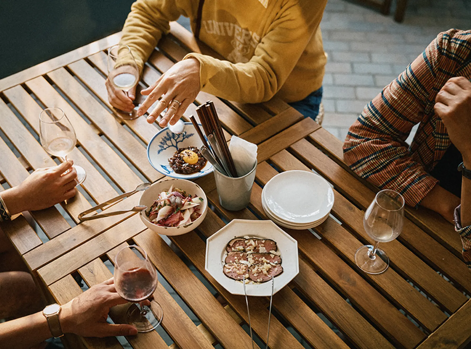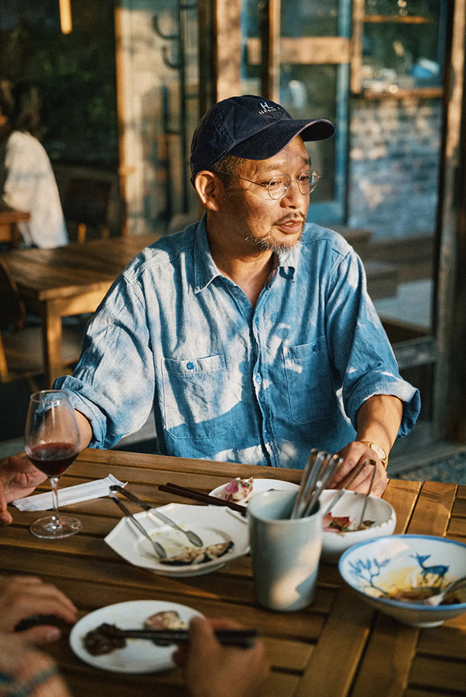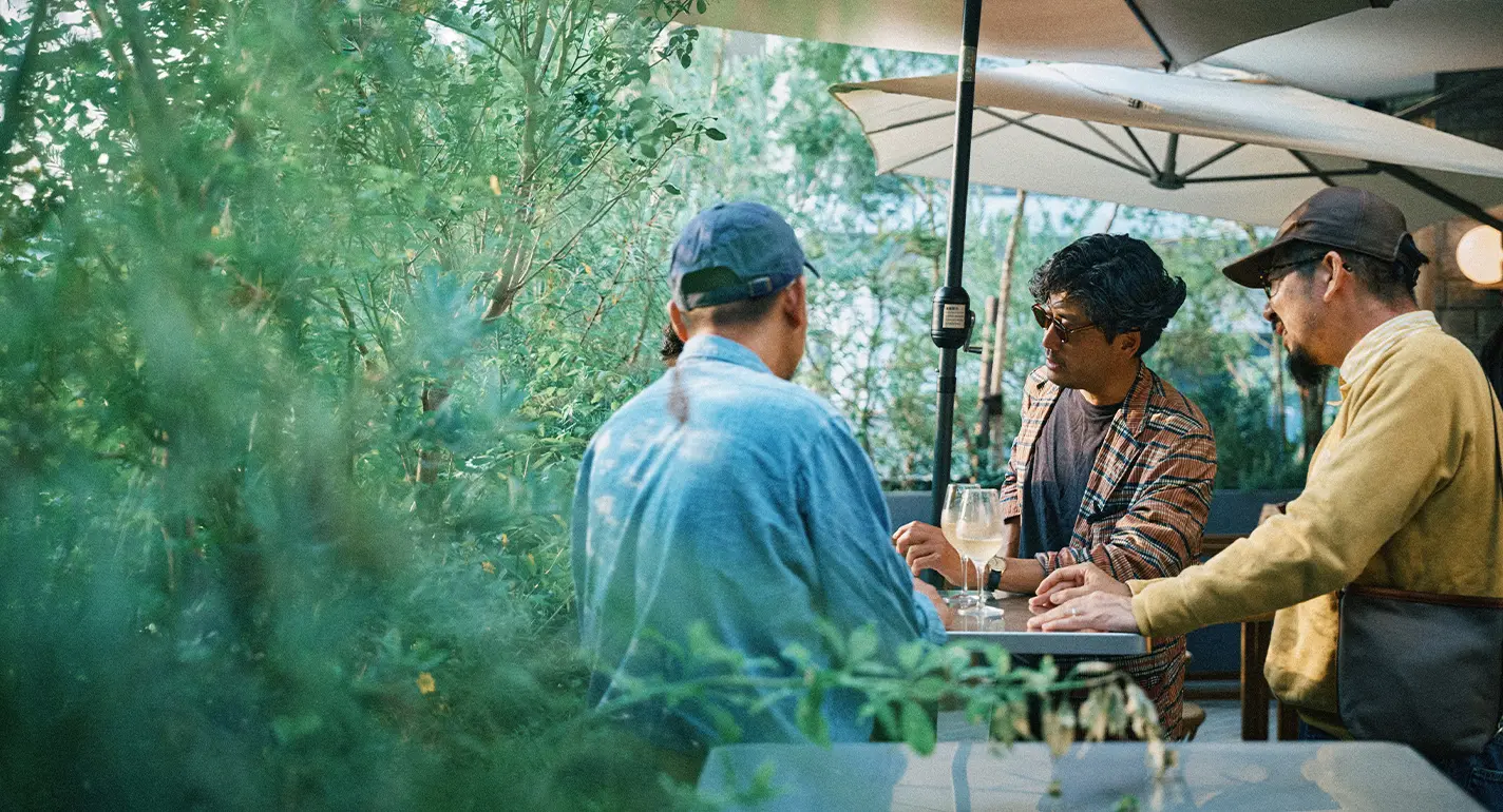 「HERILL」の大島さん、「KAPTAIN SUNSHINE」の児島さん、「OUTIL」の宇多さん、西野さん日本のファッションを支える4人が集う食事会「大島会」
