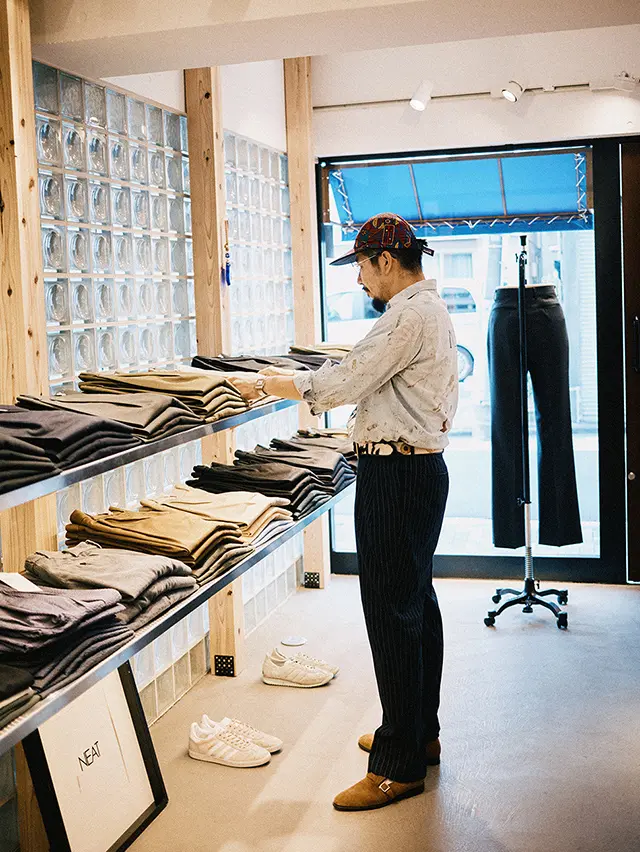 兵庫県・淡路島出身。小学校教員を経てブルックス ブラザーズで販売員・プレスを務め、2015年にパンツ専業ブランド〈NEAT〉を設立。現在はプレスオフィス「にしのや」も運営し、さまざまなブランドのPRも手がける。