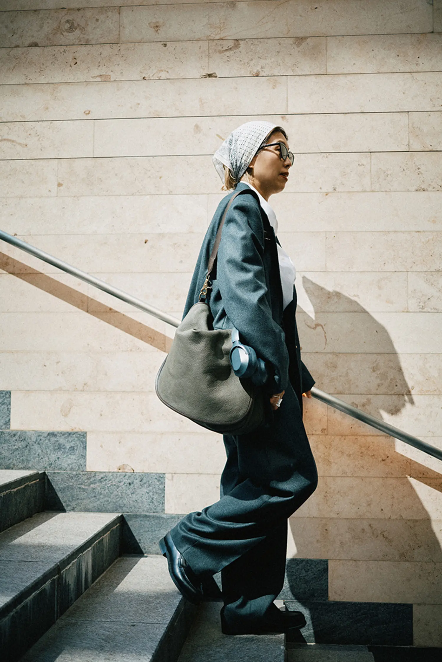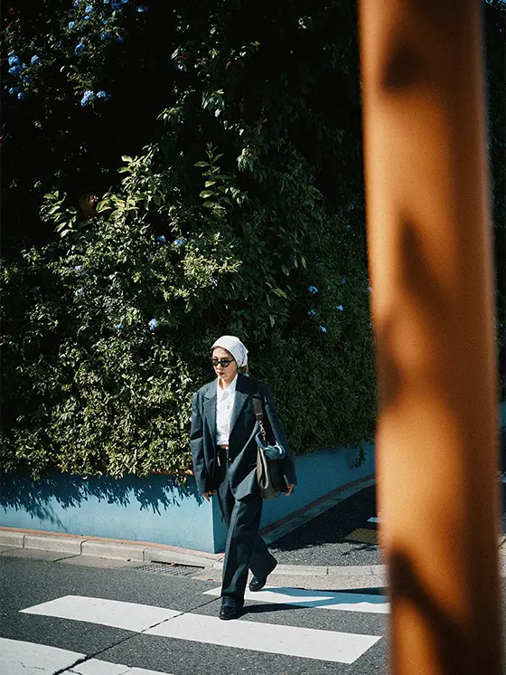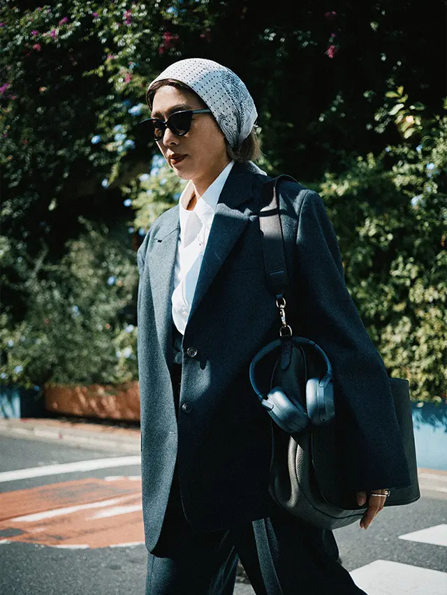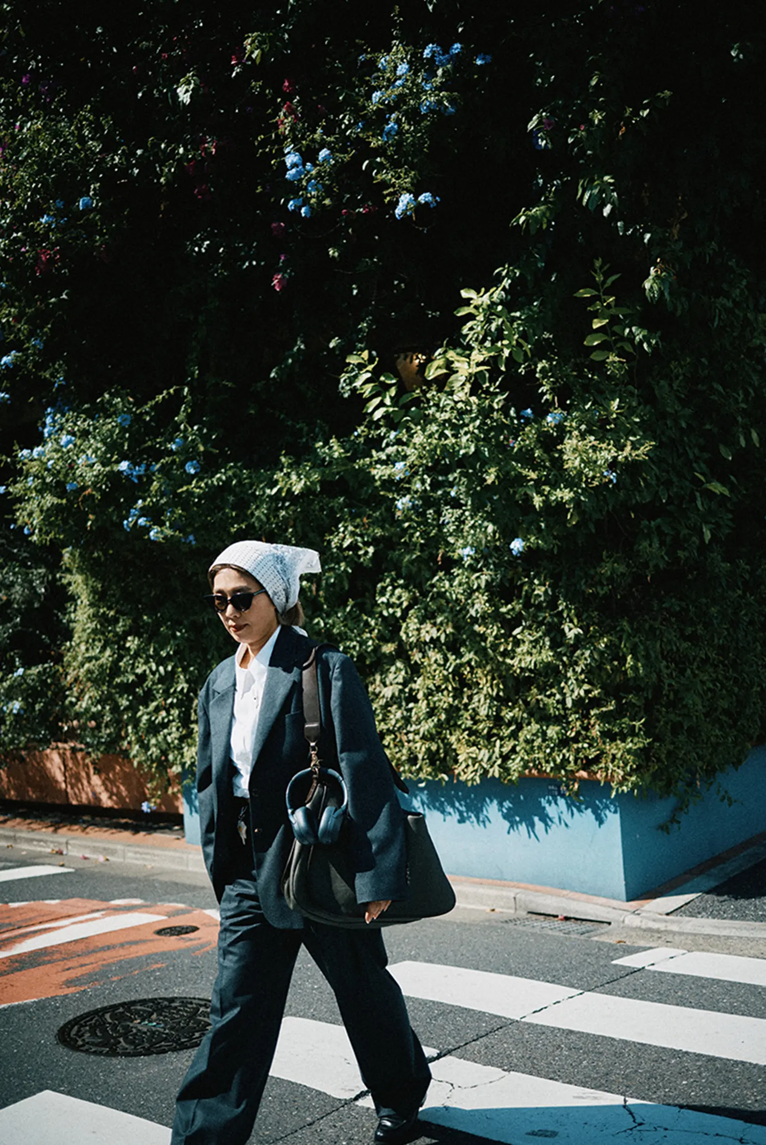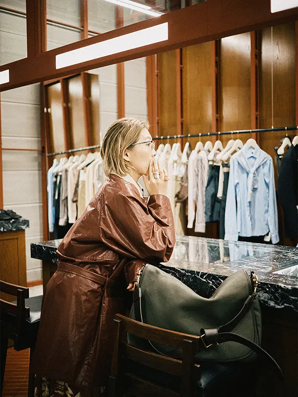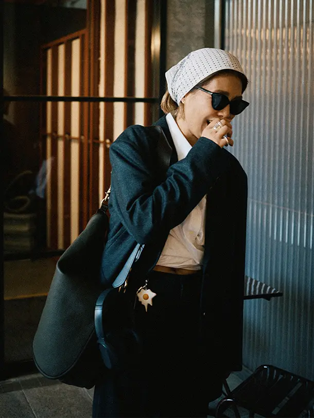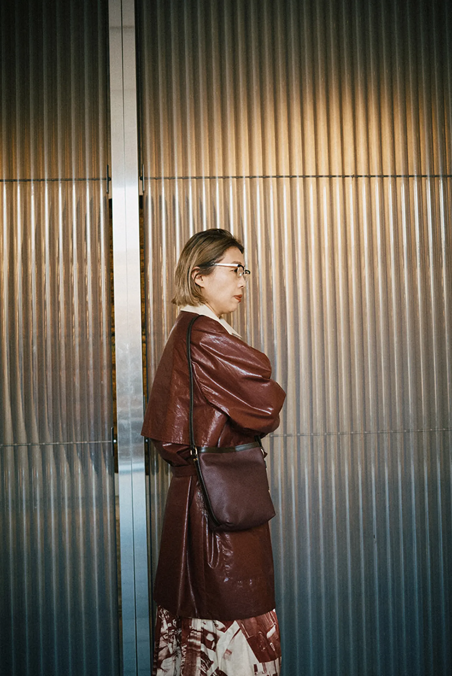 そうですね。機能性はあまり気にしないかもしれません。今回Ferraresiのバッグを拝見したときに、このショルダーバッグがいいなって思ったんです。「女性だと大きいし、重たいよ」って鴨志田さんに言われたんですけど、私にとってはそれがいい意味での違和感につながる。メッセンジャーバッグのようなスタイルも好きで、最近ロードバイクに興味があるので、自転車に乗ったときに背負うイメージもできました。そうしたアクティブで大人な女性像が頭の中に浮かんだんですよね。だからバッグも同じなんです。なりたい女性像が先にあって、それに合わせて直感的に手に取っていますね。