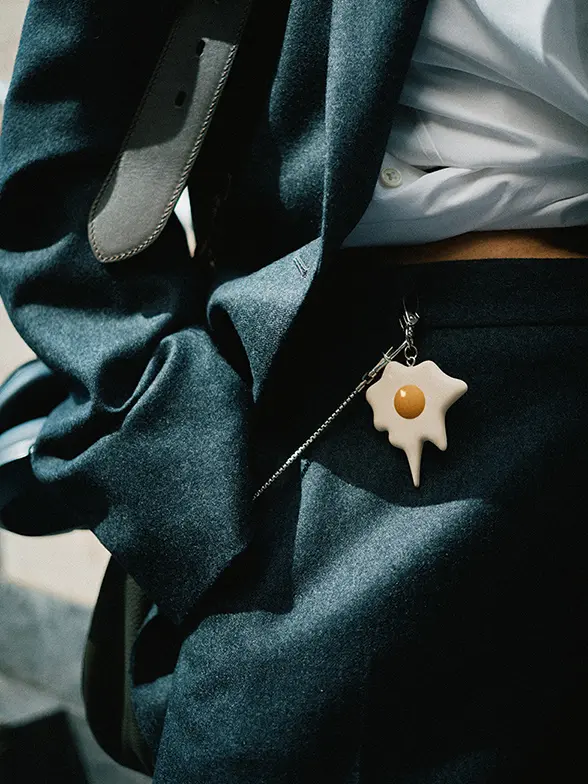 ちょっとした違和感ですね。ユーモアというか、そういった要素を小物類でポイントとして取り入れたいと思っていて。たとえば6の新作でビッグショルダーのジャケットがあるのですが、着ると強い女性像が浮かび上がるんです。その抜きの要素として、ミュージアムグッズのキーホルダーを取り入れてみました。