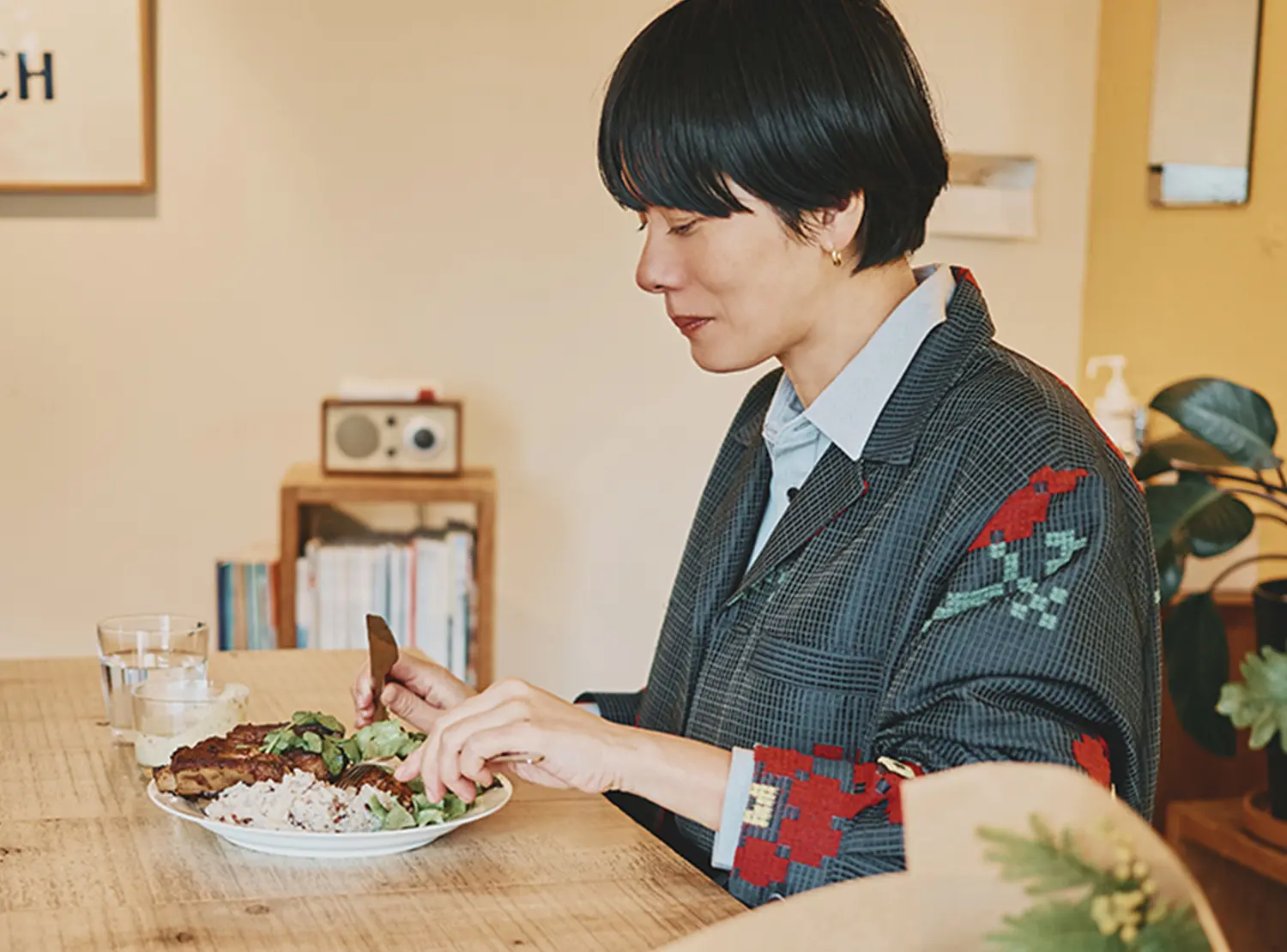 やっぱりバランスかな。真面目になったらユーモアを取り入れたいし、その逆もまた然り。アイテムの組み合わせもそうだし、それをどう着るかっていうのも大事だと思うんです。シャツをインするのか、外に出すのかでも印象って変わってくるから。その中で、あまり人と被らないバランス感を模索しています。あと、男性の服の着方は参考にしているかもしれないですね。