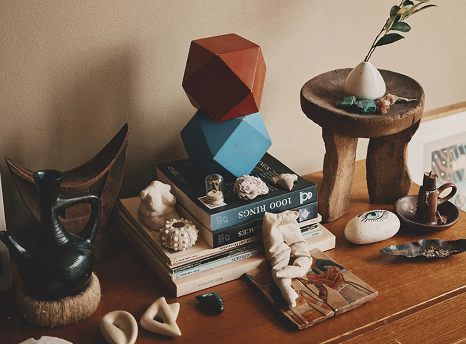 お部屋にはモダニズムを感じる工業的なプロダクトや、不思議な形をした石など、自然由来のオブジェもミックスして置いてありますよね。