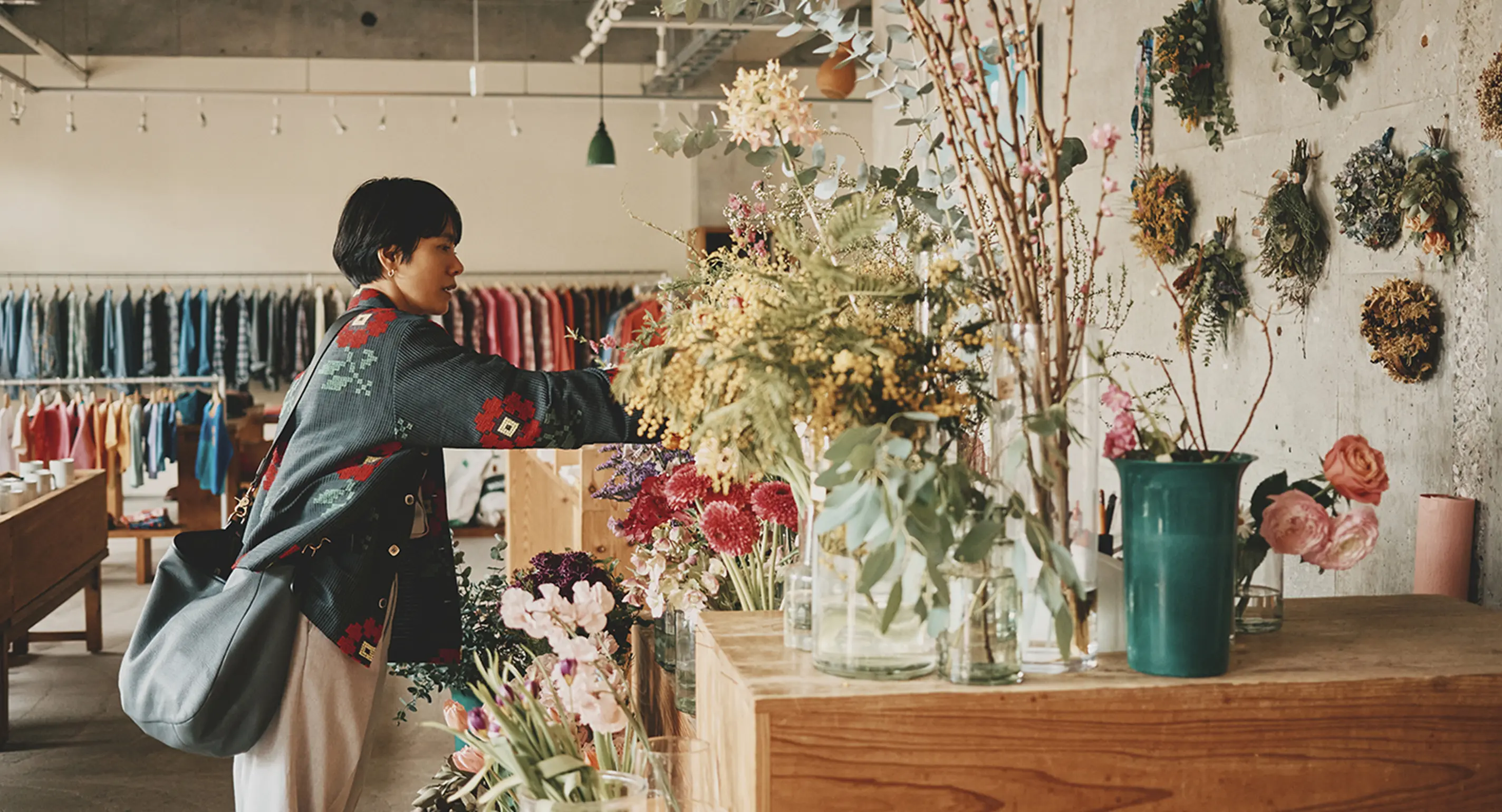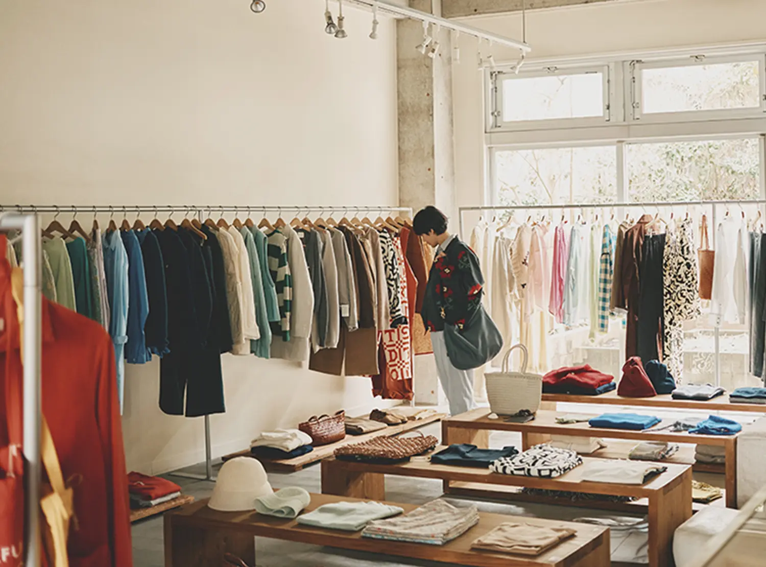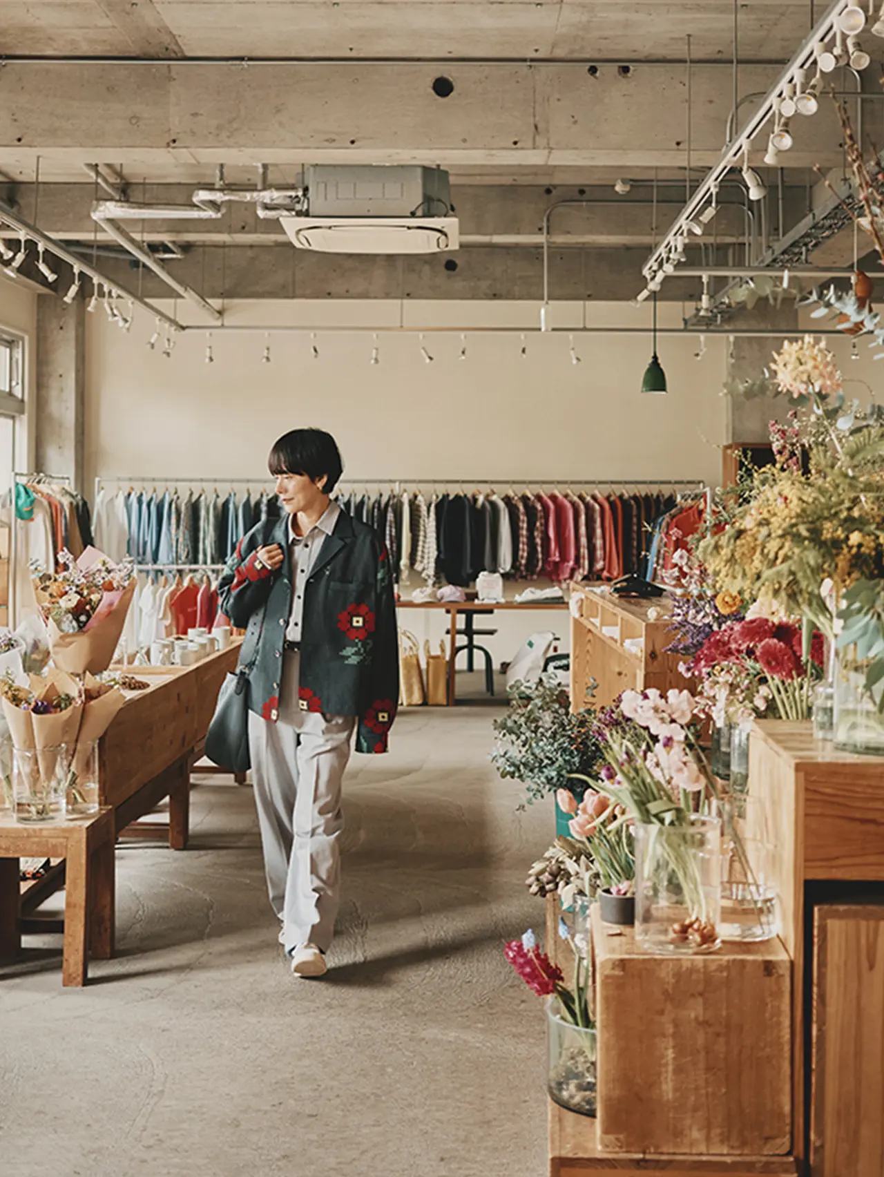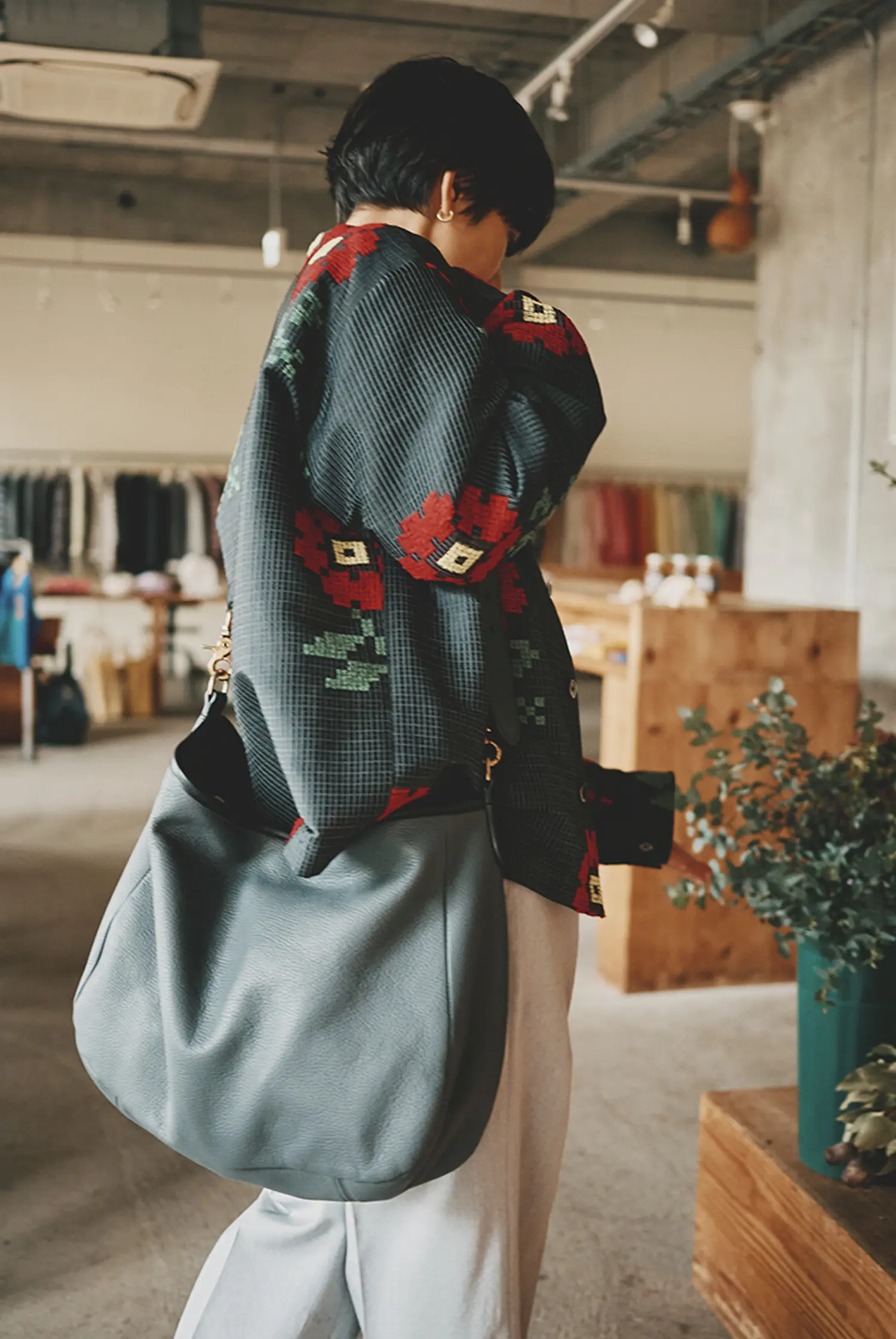 もともとはクラシックでトラッドなものが好きだったんですけど、若い頃に務めていたお店がすごくモードで、その影響はめちゃくちゃ受けてますね。「これ、どうやって着るの?」っていう服がたくさんあって、実際に袖を通してみると、思いもよらないシルエットになったりするんです。いまは年齢も重ねて斬新なデザインはひと通り消化できたから、つくるものはベーシックにしつつも、生地や柄にこだわるフェーズに入ってますね。