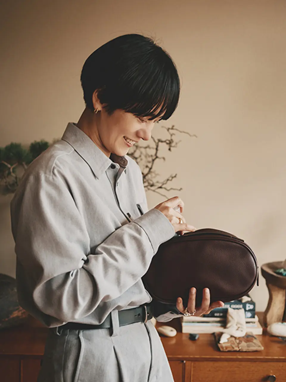 あるようで、ないかもしれないですね(笑)。一時期はバッグを持たずに出歩いていた頃もあるんです。きっとそれもメンズファッションに影響されてのことだと思うんですけど。30代の頃はCHANELのバッグに憧れて持っていたけど、いまになってユニセックスなものにも惹かれる自分もいるし。難しいですよね、バッグって。