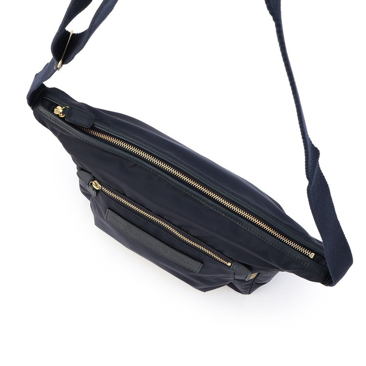 収納部よりも広くスペースを取った開口部、立体的なジップ付きフロントポケットなど、実用性に優れたデザインを多く採用。開口部は堅牢なバケッタレザーでパイピングを施しているため、ジップが開きやすく快適です。これらの機能的なディテールからなる独自のバッグフォルムが特長のひとつ。また、程よい細さのストラップを採用しているため、ジャケットやニットなどドレッシーな洋服にも合わせやすい品の良さもポイントです。