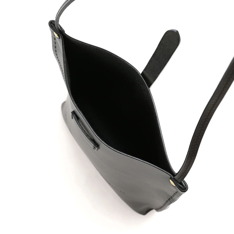 強靭な素材特性により、薄く仕立てても十分な堅牢さを実現。一般的なレザーバッグに比べ軽量に仕上げています。