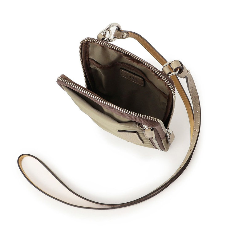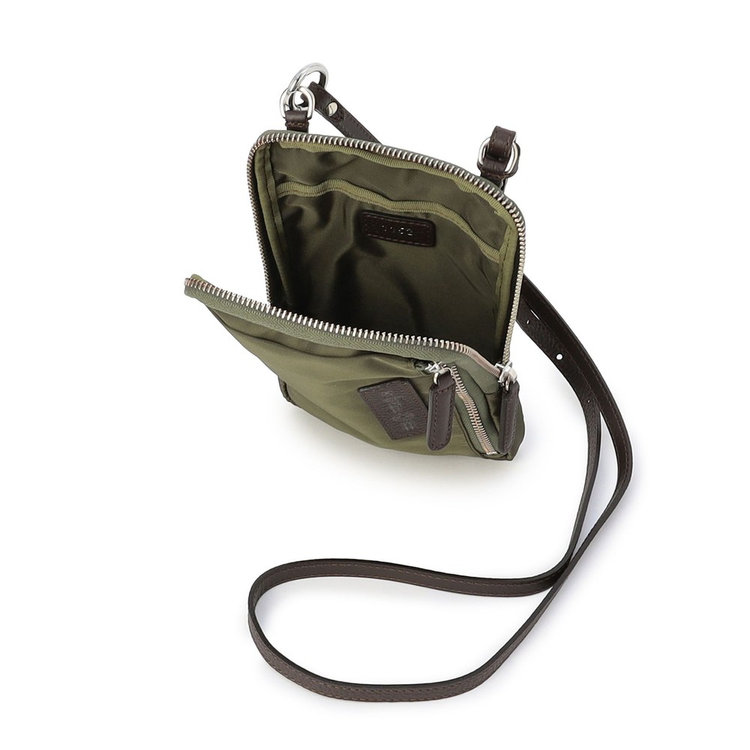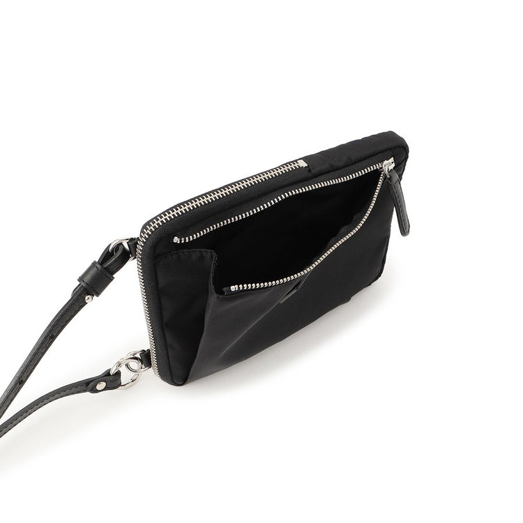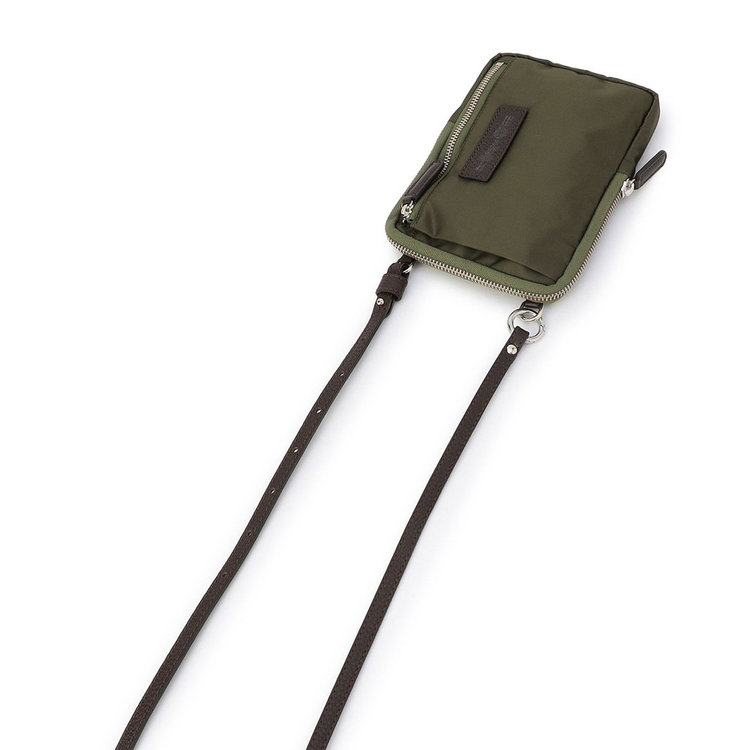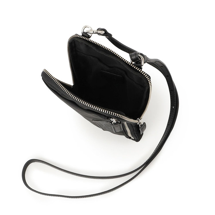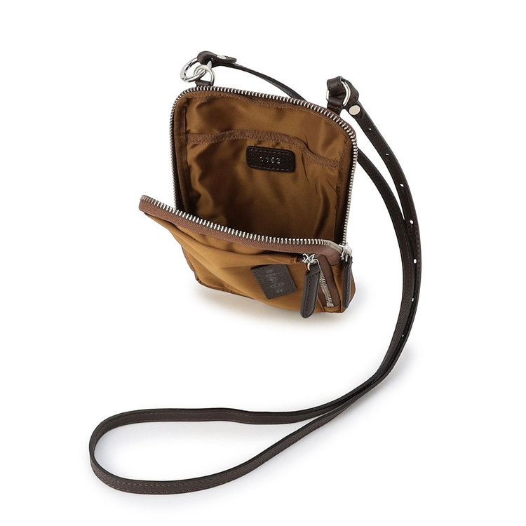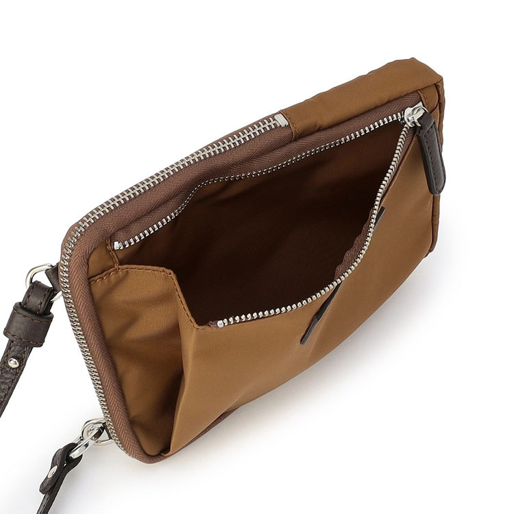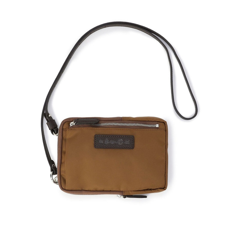 軽快な使い心地のミニショルダーバッグ。薄マチでコンパクトなサイズ感に加えて、前面にファスナー付きポケット、背面にスリットポケット、内装にフリーポケットを1つずつ備えた機能的なディテールが特長。財布や携帯、キーケースなど使用頻度の高い必需品を分けて持ち運べます。メイン室にはラウンドファスナーを備えているので、開口部を大きく開くことができ、中のものが取り出しやすい仕様です。また、ストラップの片方が丸型カラビナとなっているため、バッグのDカンなどにつけてポーチとしても活用いただけるなど様々なアレンジが可能です。