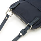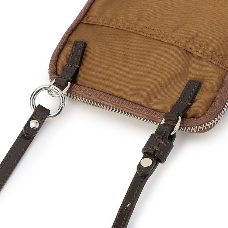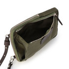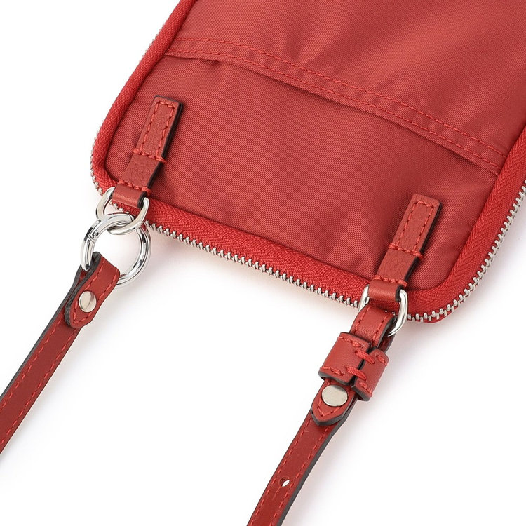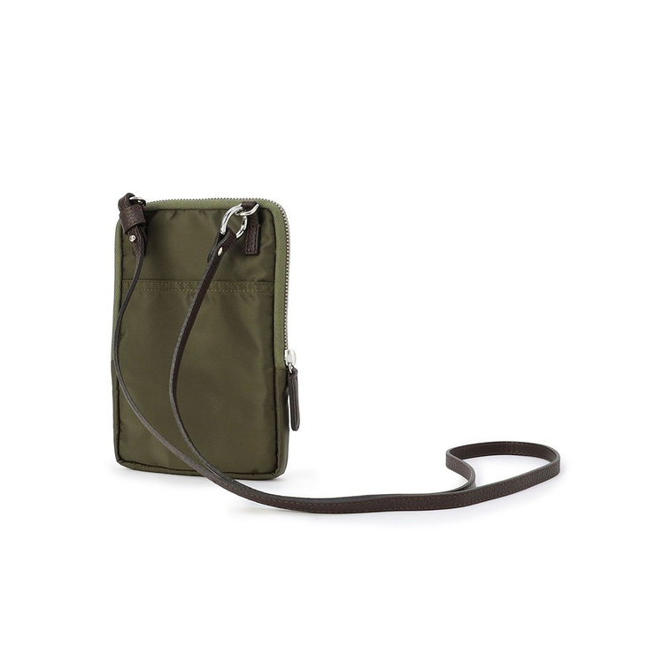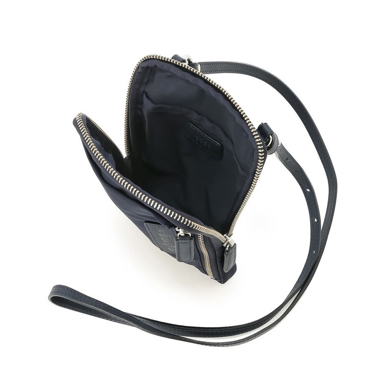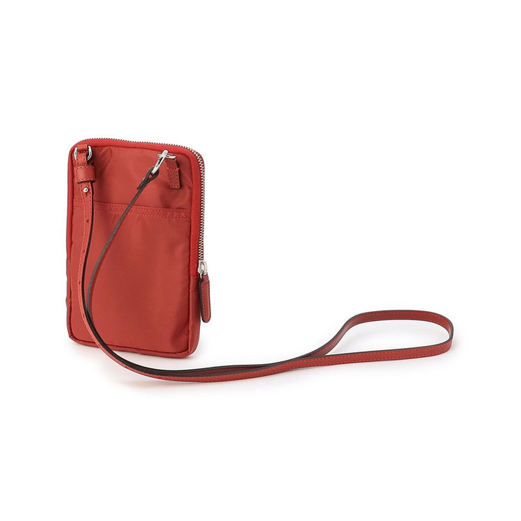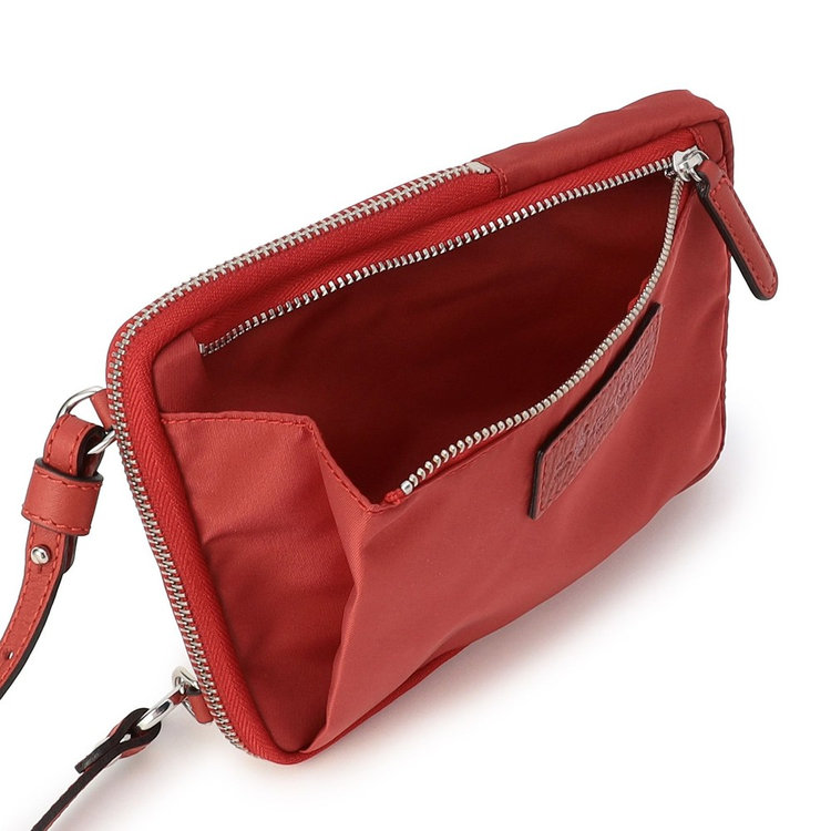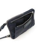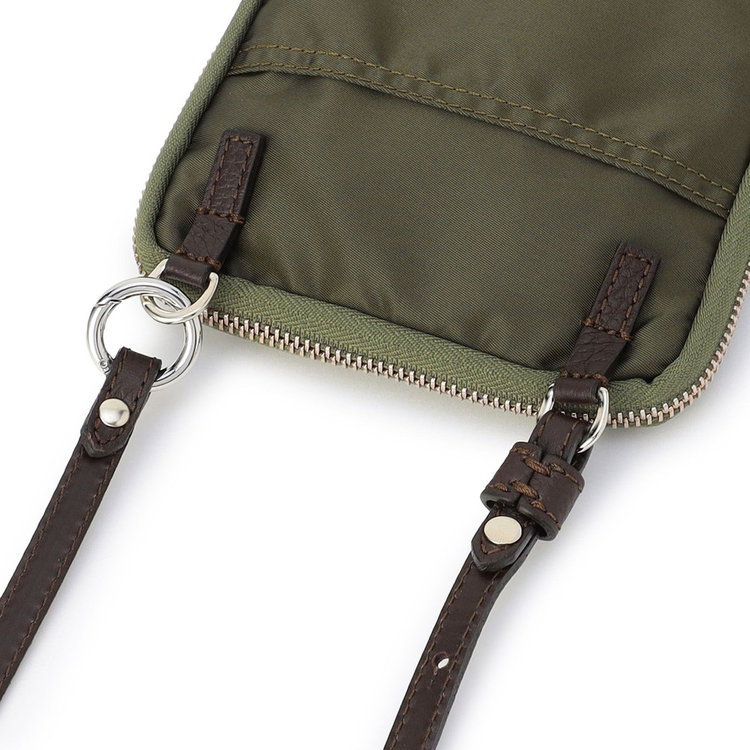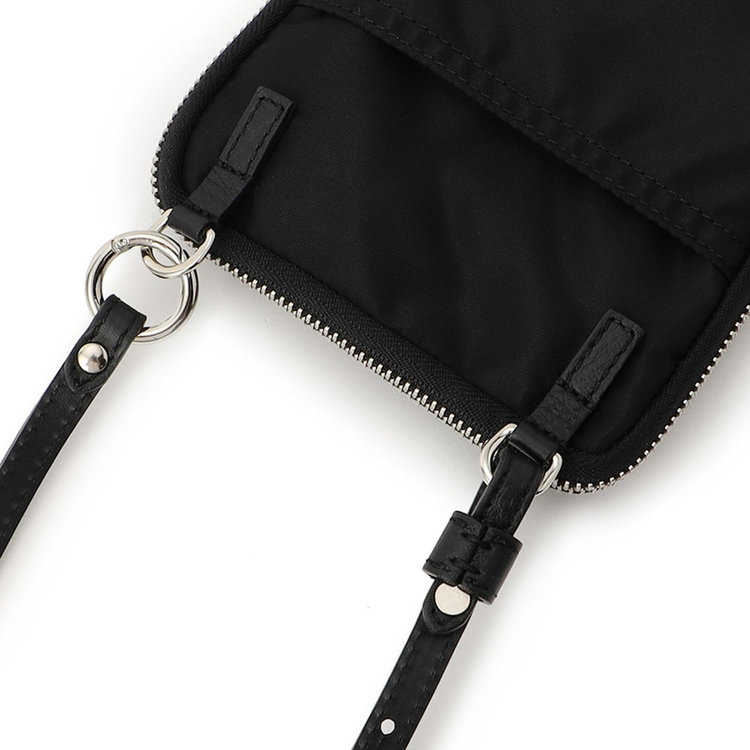 軽快な使い心地のミニショルダーバッグ。薄マチでコンパクトなサイズ感に加えて、前面にファスナー付きポケット、背面にスリットポケット、内装にフリーポケットを1つずつ備えた機能的なディテールが特長。財布や携帯、キーケースなど使用頻度の高い必需品を分けて持ち運べます。メイン室にはラウンドファスナーを備えているので、開口部を大きく開くことができ、中のものが取り出しやすい仕様です。また、ストラップの片方が丸型カラビナとなっているため、バッグのDカンなどにつけてポーチとしても活用いただけるなど様々なアレンジが可能です。