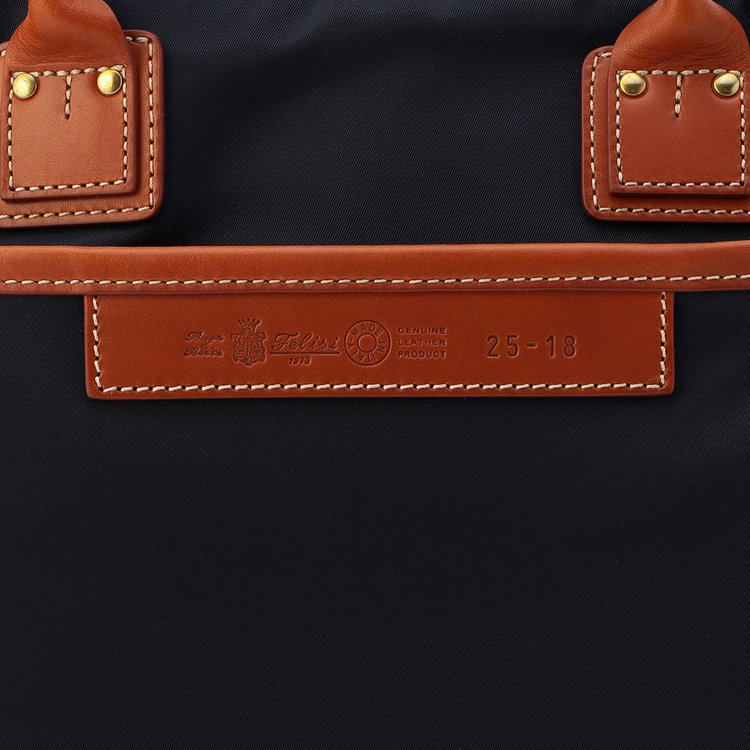 Felisiを代表するメインマテリアルのひとつであるナイロン生地。シルクのような光沢とイタリアンレザーにも通じる鮮やかな発色が魅力です。高密度に織られた生地はしなやかな弾力性があり摩擦に強く、防皺(シワ)性にも優れています。その特性から使い込むほどに革のように馴染んでいきます。
