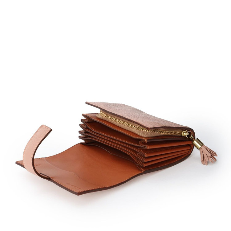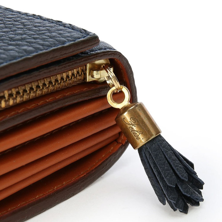 Felisi(フェリージ)定番のミニ財布。手のひらに収まりやすいコンパクトサイズながら、5層の蛇腹式ポケットと180度開閉可能なジップ付き小銭入れを備えており、高い収納力を誇ります。蛇腹式ポケットは紙幣のほかカードや領収書、鍵などの小物も収納しやすく、フリーポケットのような感覚でお使いいただけます。小銭入れは幅広マチが付属し、大きく開閉しやすい仕様です。