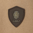 さりげなく胸元に入ったエンブレムは上質な人口皮革にプリント転写で立体的に表現されており、カジュアルな中にも高級感があります。