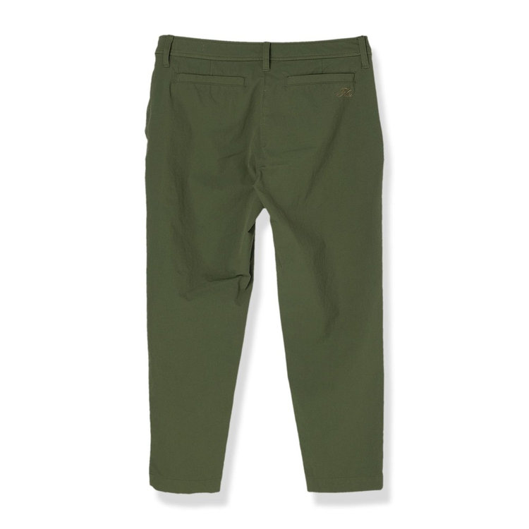 後ろのポケットに入ったブランドロゴの刺繍は主張し過ぎず、日常使いにも取り入れやすいデザインです。