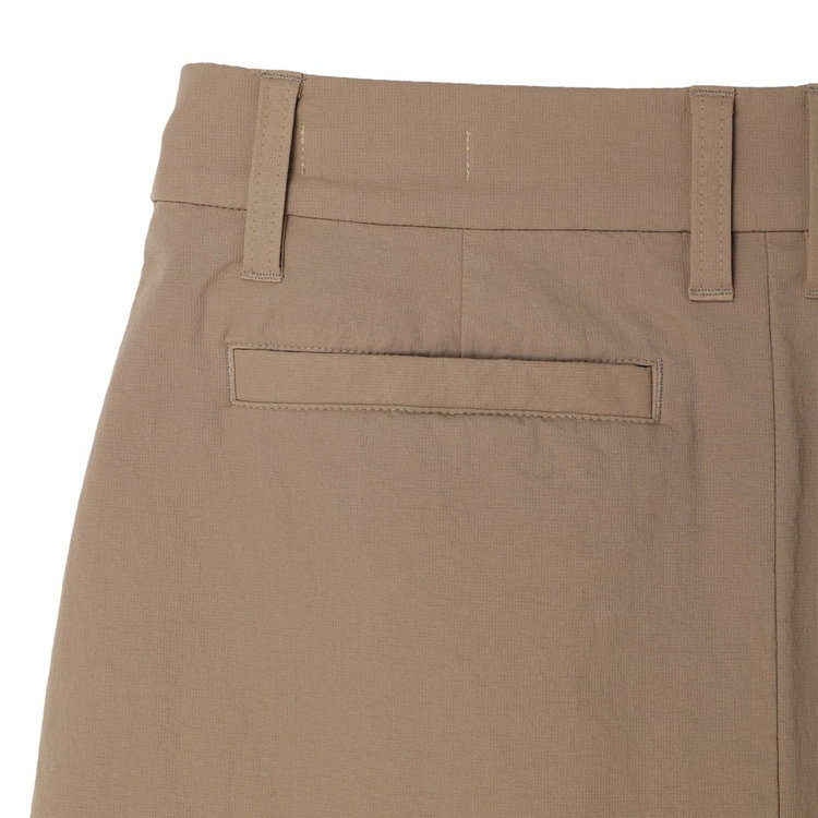 後ろのポケットに入ったブランドロゴの刺繍は主張し過ぎず、日常使いにも取り入れやすいデザインです。