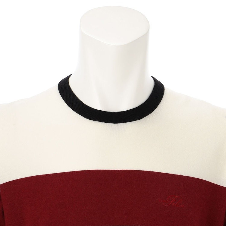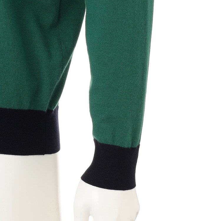豊かな発色でコーディネートを彩るクルーネックセーター。トリコローレを彷彿させるカラーリングを採用した、Felisi Golf(フェリージ ゴルフ)らしいデザインです。ハイゲージならではの上品な落ち感を愉しめつつ、メリノウールによる吸湿速乾性、抗菌作用、保温性など天然素材由来の機能性を兼備。背面にはFelisi IL GOLF(フェリージ イル ゴルフ)のメタルプレートをあしらい、シンプルなデザインに華やかさを取り入れました。今季Felisi Golfを象徴するディテールです。