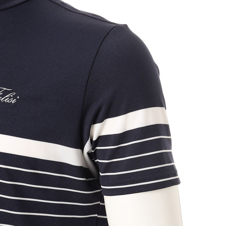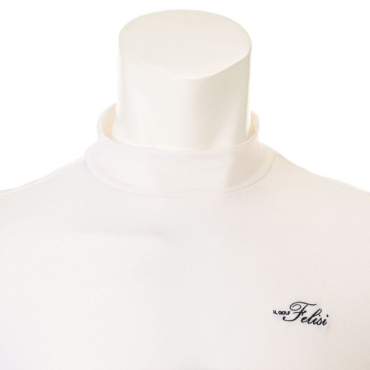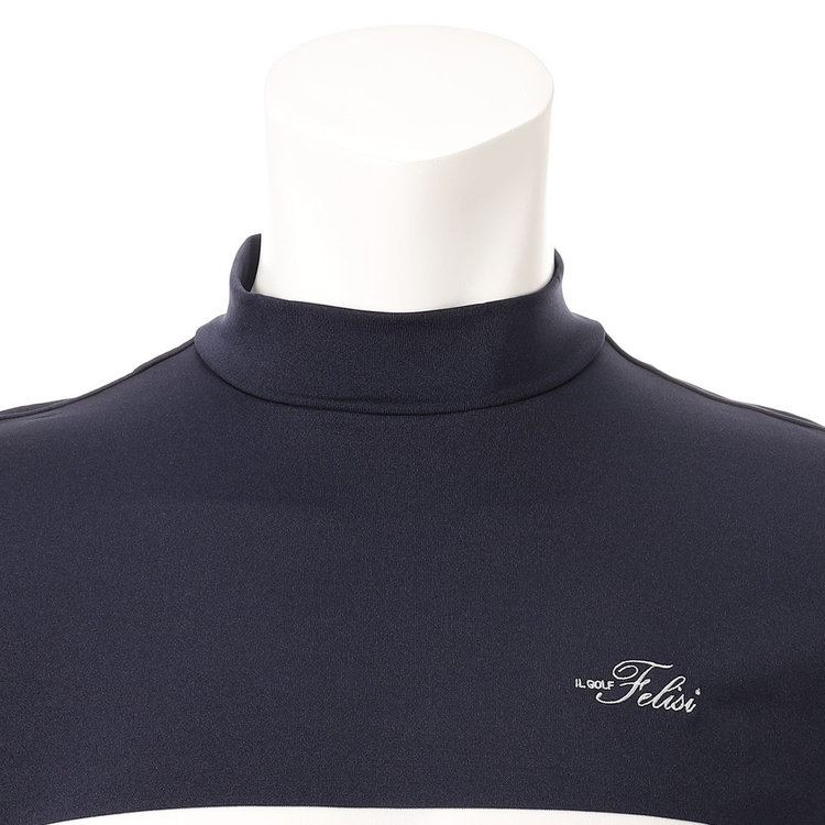 爽やかなマリンストライプがグリーンビューに映えるハイネックTシャツ。肌当たりが良く伸縮性に長けているほか吸水速乾性に優れているため、アクティブなゴルフシーンに適しています。襟の高さはジャケットと合わせやすい約4.5cm。品の良い印象のため日常使いにもおすすめです。前面にFelisi IL GOLF(フェリージ イル ゴルフ)のブランドロゴを刺繍、背面にはメタルプレートをあしらい、シンプルなデザインに華やかさを取り入れました。