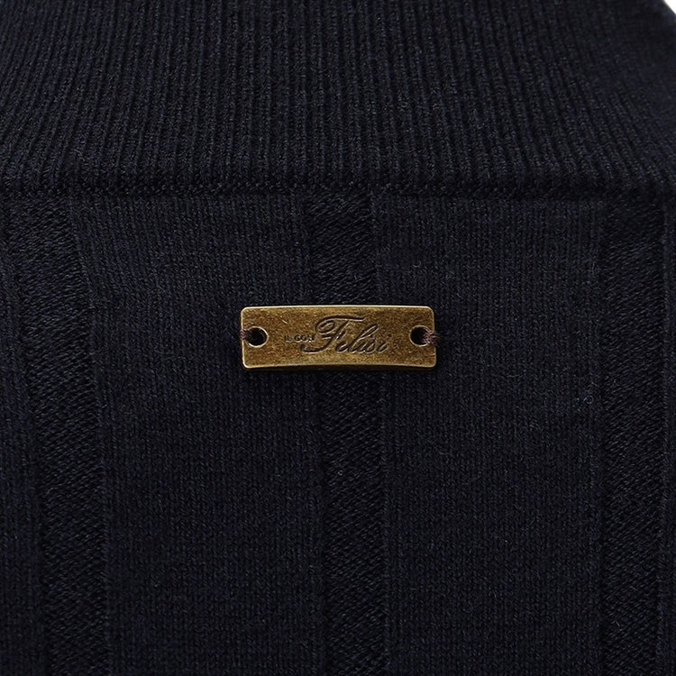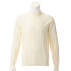 幅広のストライプ柄がポイントのハイネックセーター。品の良さを与えてくれるストライプ柄は編みの変化をつけて表現しているため、単品での着用に適した程よい厚みに仕上がっているのが特長です。トラディショナルな雰囲気が漂うセーターはゴルフシーンだけでなくドレスカジュアル、普段使いにも好相性。格式高いクラブハウスにも相応しい風格があります。
