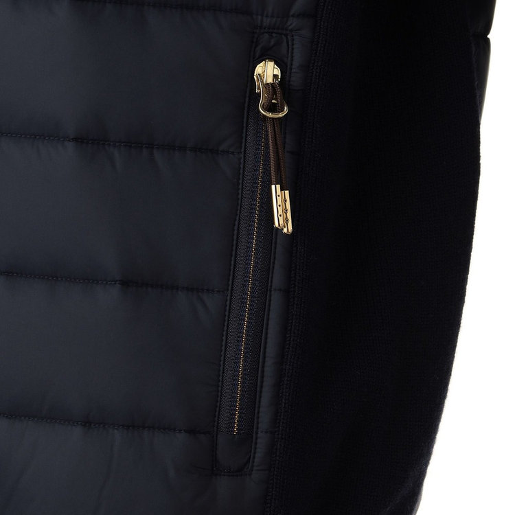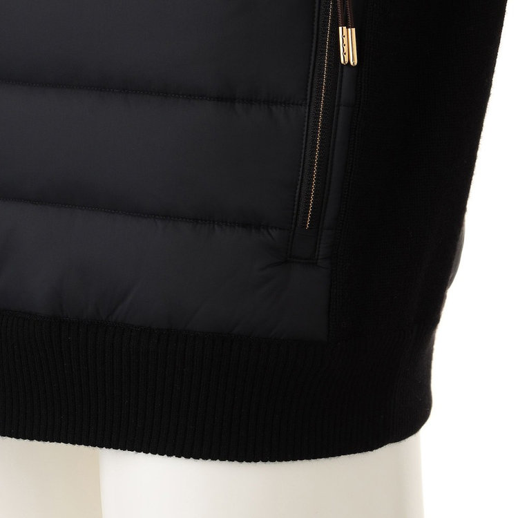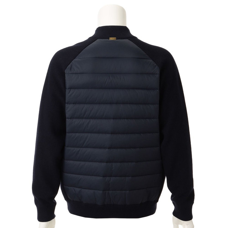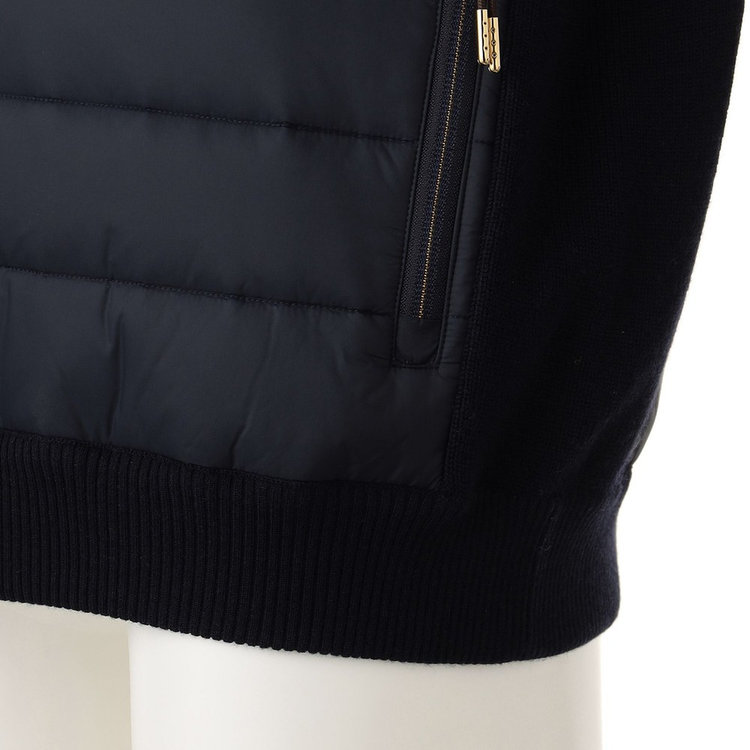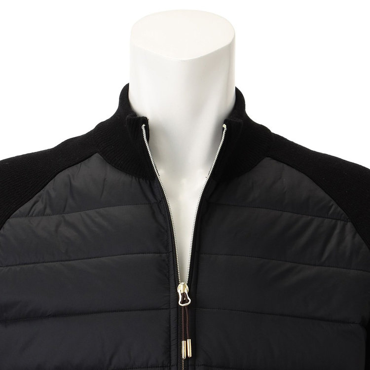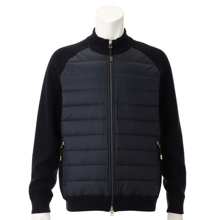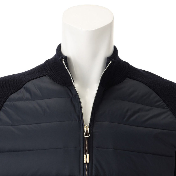 Felisi IL Golfらしい素材コンビネーションを採用したスタンドカラーブルゾン。前面には機能的なリモンタ社製ナイロンを、身頃と袖は上品なハイゲージニットを採用しており、Felisiの素材使いを彷彿とさせます。スタンドカラーのデザインやリブ編みのニット生地、ディテールにはアクティブに動きやすいラグランスリーブを採用しており、王道の風格を漂わせます。軽やかでエアリーな着心地ながらも総裏仕様のため防寒性が高く、裏地にはメッシュ素材を採用しているため袖通しが良く快適な着心地を愉しめる1着です。