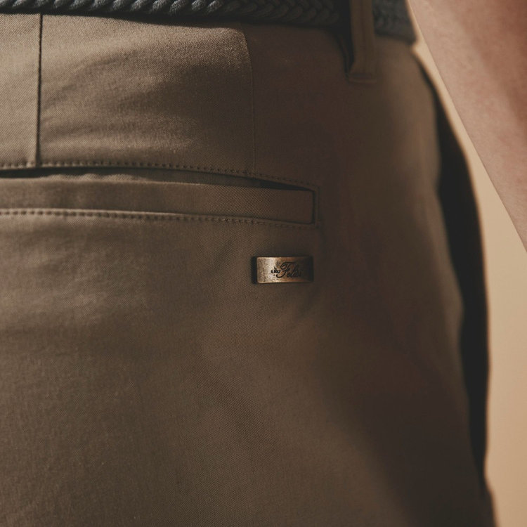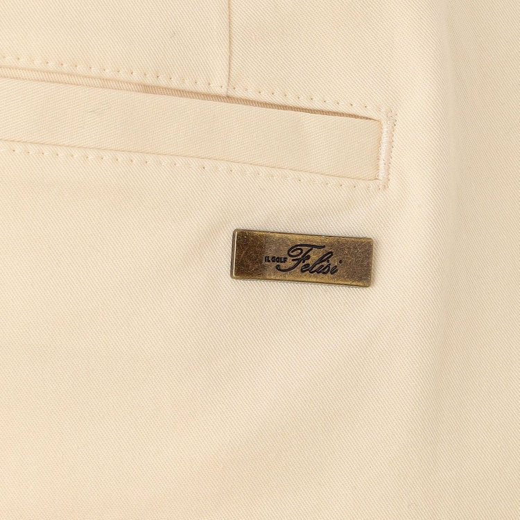 また、クリースやVスリットのような、クラシカルなドレスパンツを象徴するディテールが大人に相応しい品格を演出してくれます。バックポケットにはFelisi IL GOLF(フェリージ イル ゴルフ)のメタルプレートをあしらい、シンプルなデザインに華やかさを取り入れました。Felisi IL GOLFを象徴するエレガントなディテールのひとつです。