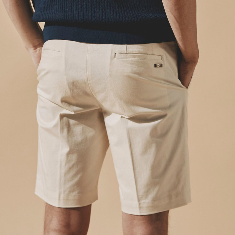 ゴルフシーンから日常使いまで対応可能な美しいシルエットのショートパンツ。生地には1982年イタリアにて創業のコットンメーカー「OLIMPIAS(オリンピアス)」社のストレッチコットンを採用。程よく厚みのあるヴィンテージテイストを備えた風合い豊かな微起毛生地で、幅広いスタイリングに馴染みつつ上質さを添えてくれます。経年変化を愉しめるようなハリ感のある生地でありながら、ストレッチ性を備えているのも特長です。