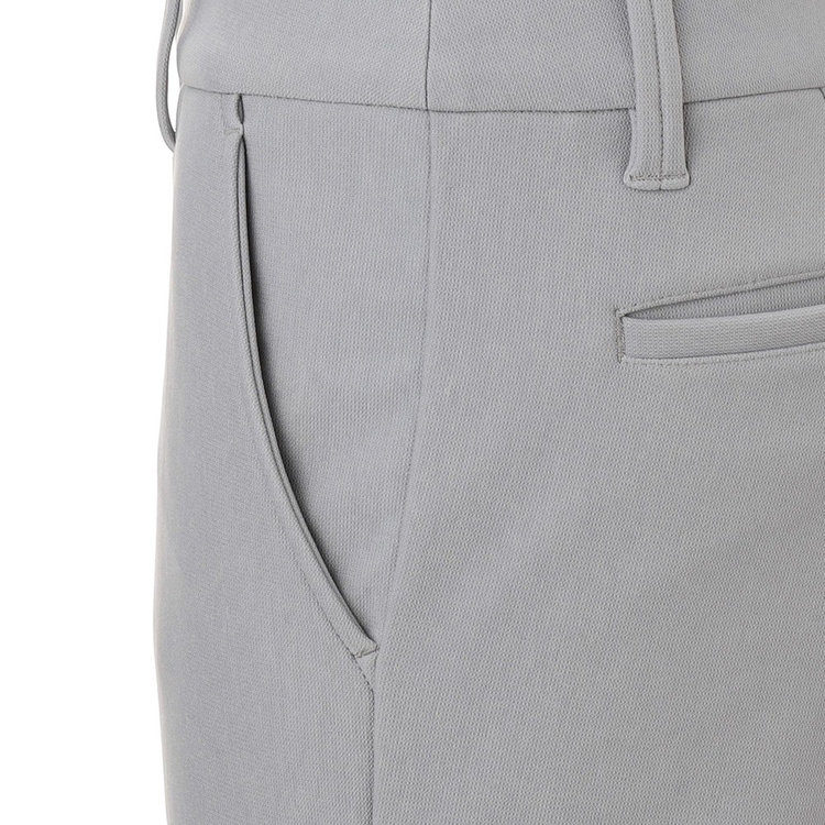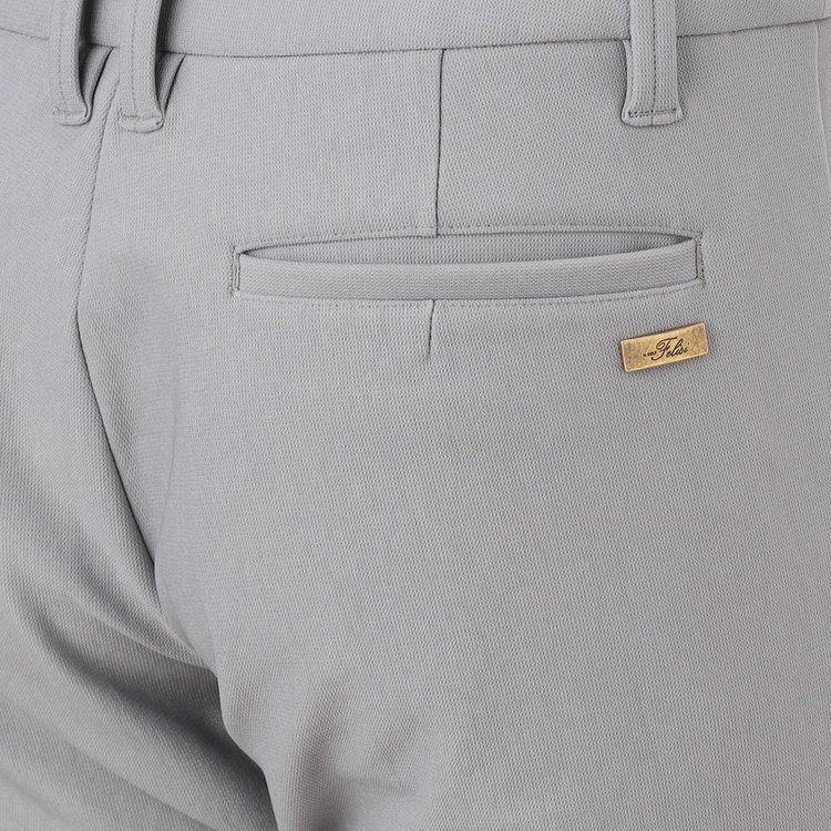 ストレッチ性に優れたベーシックトラウザーズ。ジャージ素材らしい快適な穿き心地と、マットな生地感で日常着にも取り入れやすいルックス。程よい厚みの裏起毛素材のため、秋冬ゴルフに適しています。バックポケットにはFelisi IL GOLF(フェリージ イル ゴルフ)のメタルプレートをあしらい、シンプルなデザインに華やかさを取り入れました。今季Felisi Golf(フェリージ ゴルフ)を象徴するディテールです。