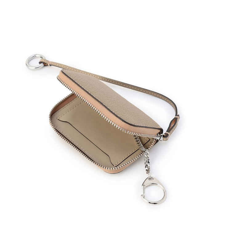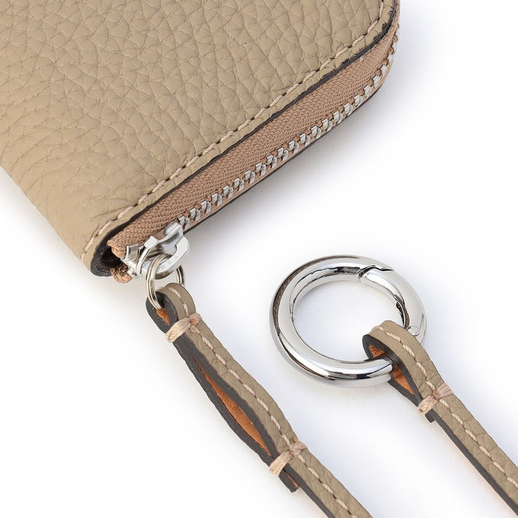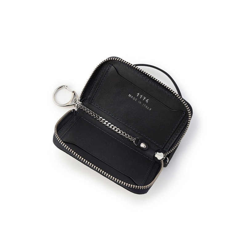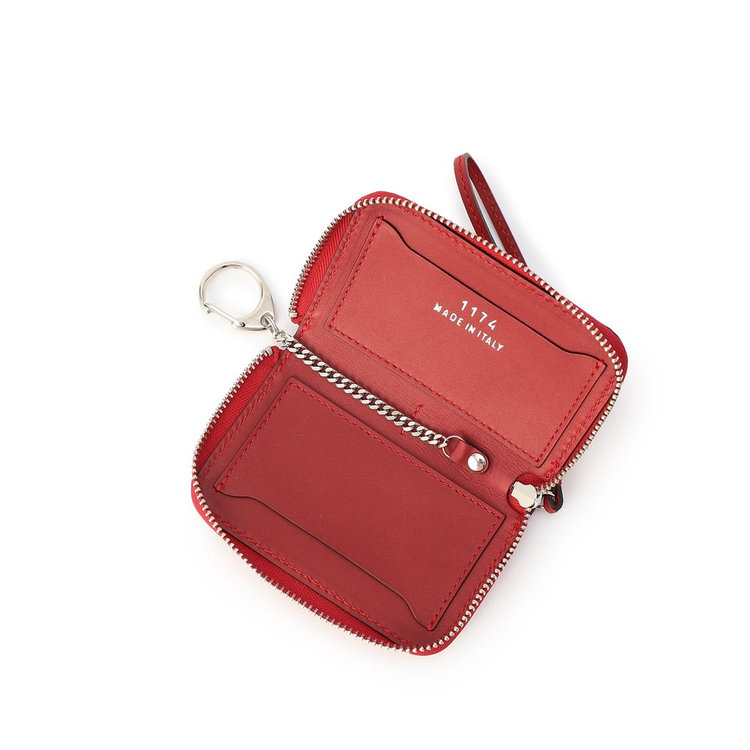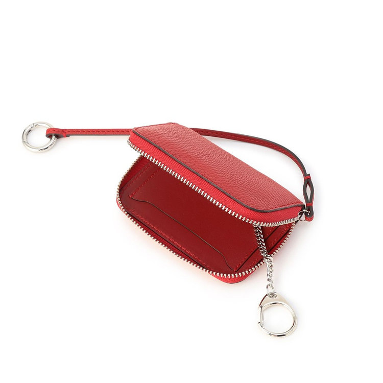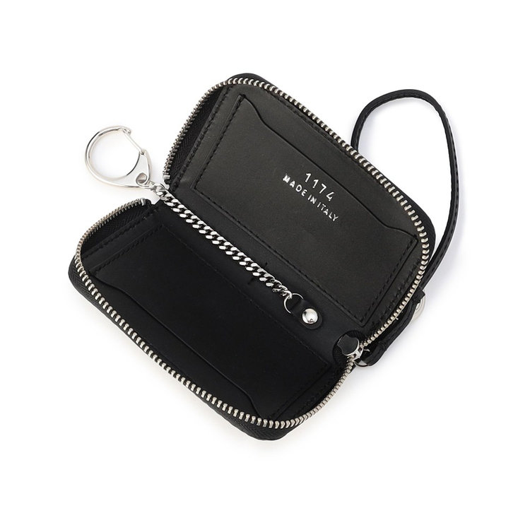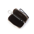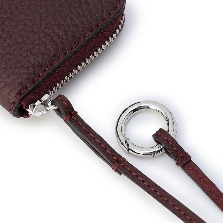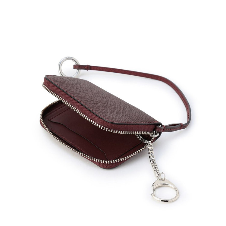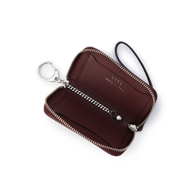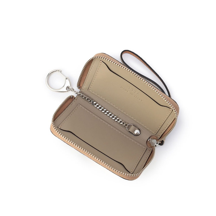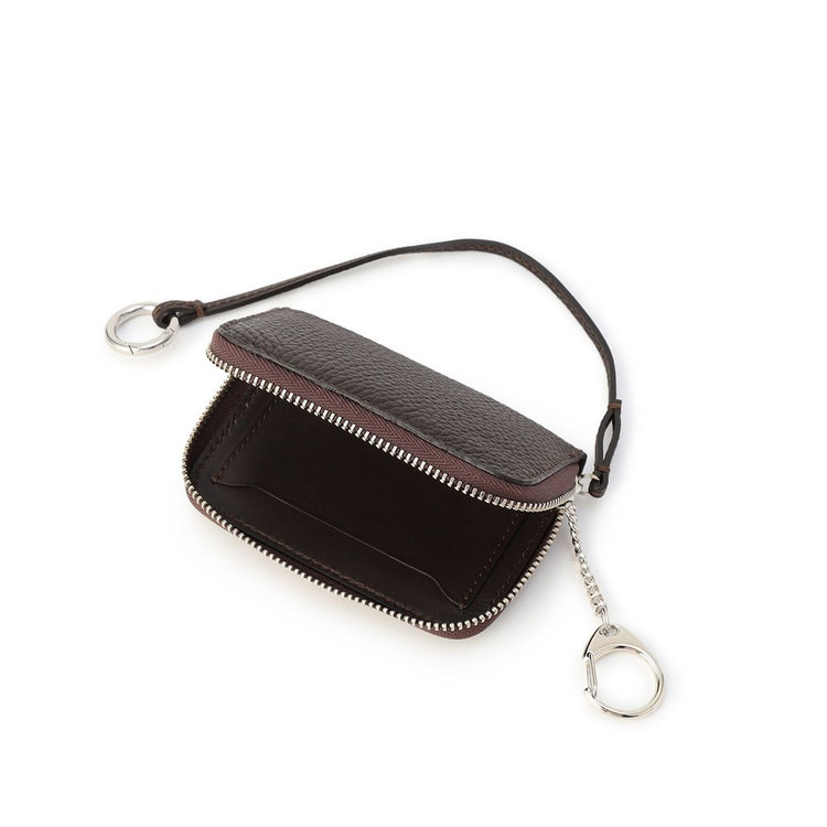 手のひらほどのサイズ感で、軽快に持ち運ぶことができるストラップ付きのキーケース。スマートキーケースとしてお使いいただけるサイズ感です。内側にはチェーン付きのキーリングが付属。チェーンの全長は鍵を出したままでも使用できる丁度よい長さを採用。さらにカードポケットも備えているため、カードケースとしても活用可能です。