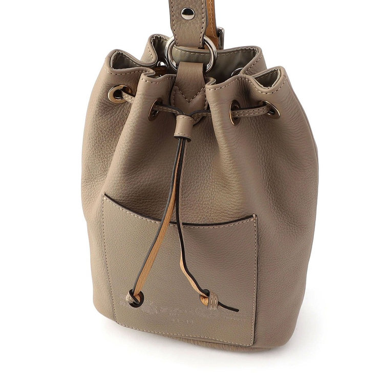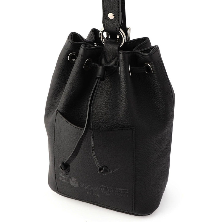 Felisiの代名詞ともいえるシュリンクレザーを使用したドローストリングバッグ。