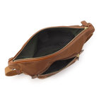 収納部よりも広くスペースを取った開口部、立体的なジップ付きフロントポケットなど、実用性に優れたデザインを多く採用。開口部は堅牢なバケッタレザーでパイピングを施しているため、ジップが開きやすく快適です。これらの機能的なディテールからなる独自のバッグフォルムが特長のひとつ。また、程よい細さのストラップを採用しているため、ジャケットやニットなどドレッシーな洋服にも合わせやすい品の良さもポイントです。