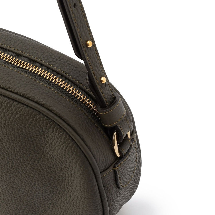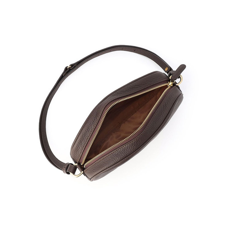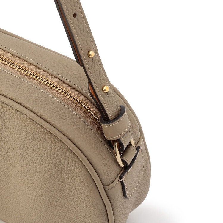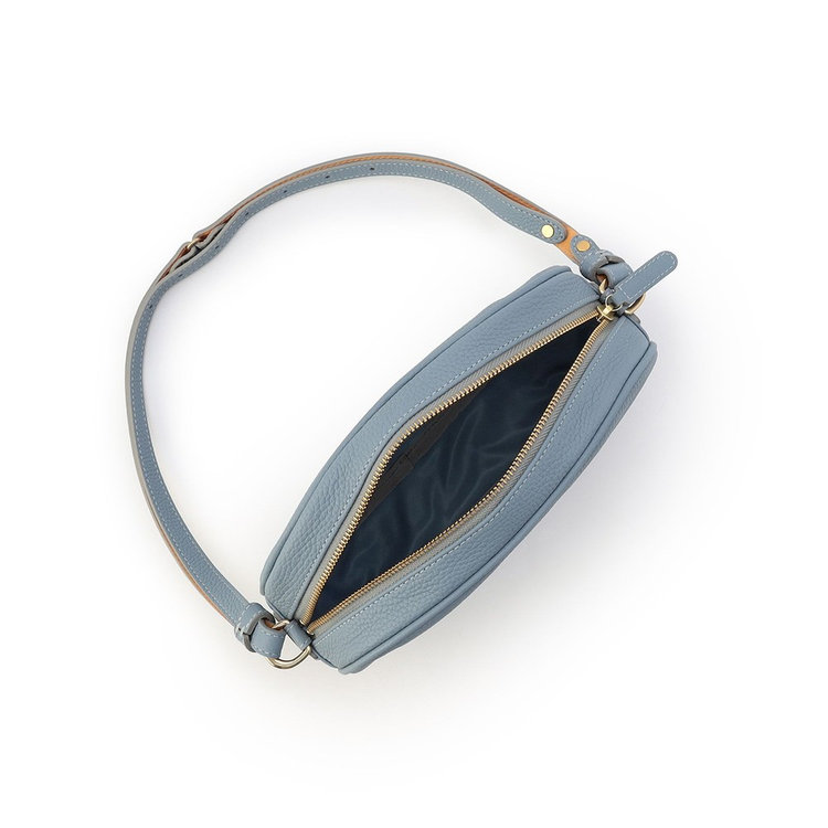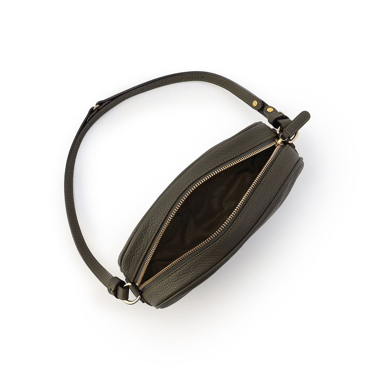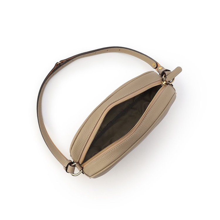 優しげで印象に残る楕円形のバッグフォルムを生むパイピングは、Felisiらしい丁寧な職人技を感じさせるディテール。メイン素材には柔らかく細かなシボが美しいシュリンクレザーを、内装にはイタリア製ナイロンを採用。見えない部分にまで上質な素材にこだわる、Felisiらしい素材選びを堪能できます。