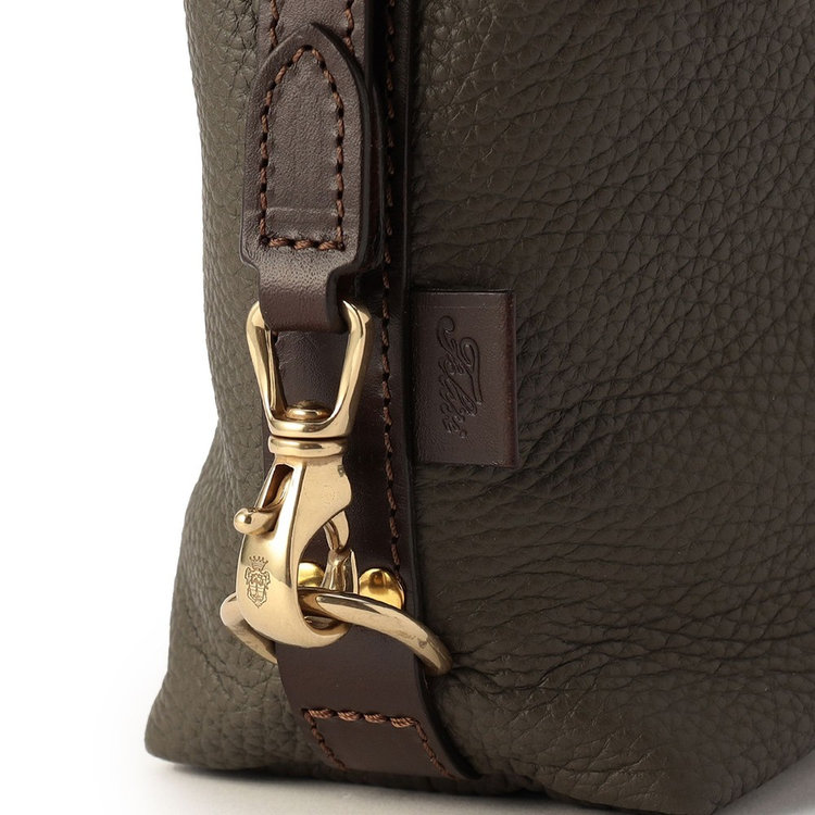 マテリアルには、シュリンクレザーとバケッタレザーを贅沢に使用。これら上質素材のコンビネーションだけでなく、内装にはイタリアンナイロンを使用しています。さらにはFelisiを象徴する真鍮パーツにもこだわり、イタリアと何度も協議を重ねて開発を行いました。さり気なくあしらわれたFelisiのレザーロゴもFerraresiならではの表現。内装のディテールについてもシンプルさを追求し、道具本来の使い心地に加え様々なライフスタイルへ応用が利く、アンダーステイトメントなデザインを採用しています。