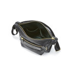 収納部よりも広くスペースを取った開口部、立体的なジップ付きフロントポケットなど、実用性に優れたデザインを多く採用。開口部は堅牢なバケッタレザーでパイピングを施しているため、ジップが開きやすく快適です。これらの機能的なディテールからなる独自のバッグフォルムが特長のひとつ。また、程よい細さのストラップを採用しているため、ジャケットやニットなどドレッシーな洋服にも合わせやすい品の良さもポイントです。