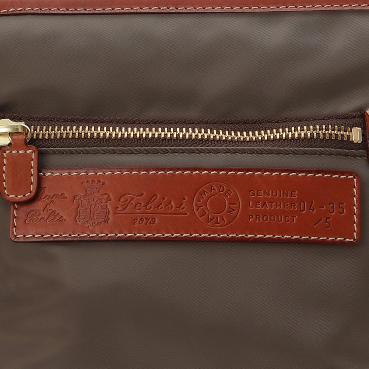 上品さと機能美を兼ね備えたFelisi(フェリージ)のショルダーバッグ。長年愛されているアイコンのひとつです。素材には軽やかな使い心地と高級感を放つ上質なイタリア製ナイロン、高品質で丁寧なつくりが愉しめるバケッタレザーのコンビネーションを採用。Felisiこだわりの素材使いが愉しめます。