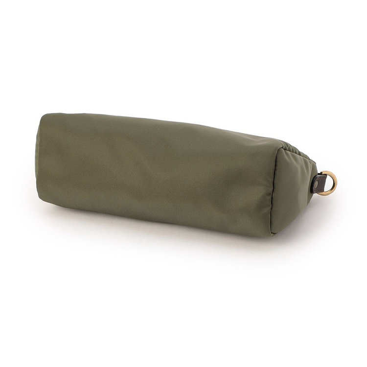 Felisiを代表するメインマテリアルのひとつであるナイロン生地。シルクのような光沢とイタリアンレザーにも通じる鮮やかな発色が魅力です。高密度に織られた生地はしなやかな弾力性があり摩擦に強く、防皺(シワ)性にも優れています。その特性から使い込むほどに革のように馴染んでいきます。