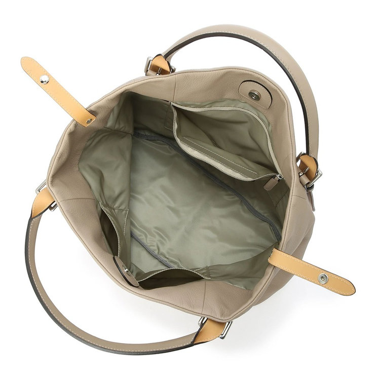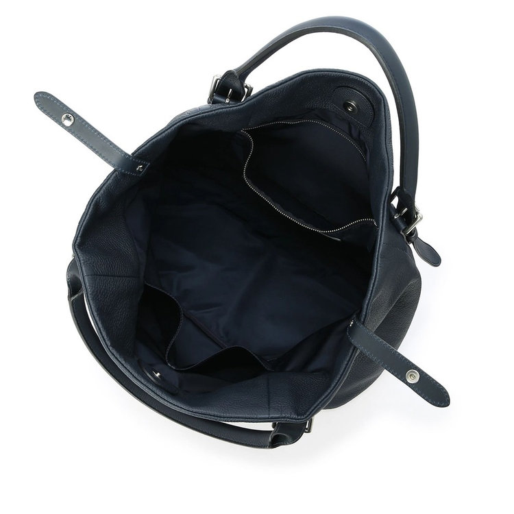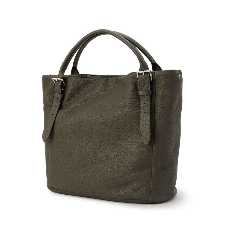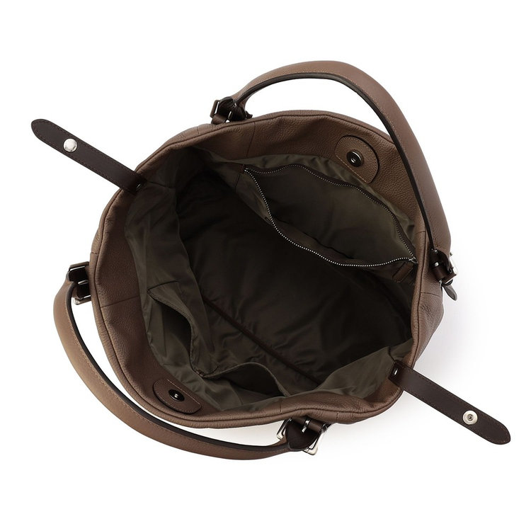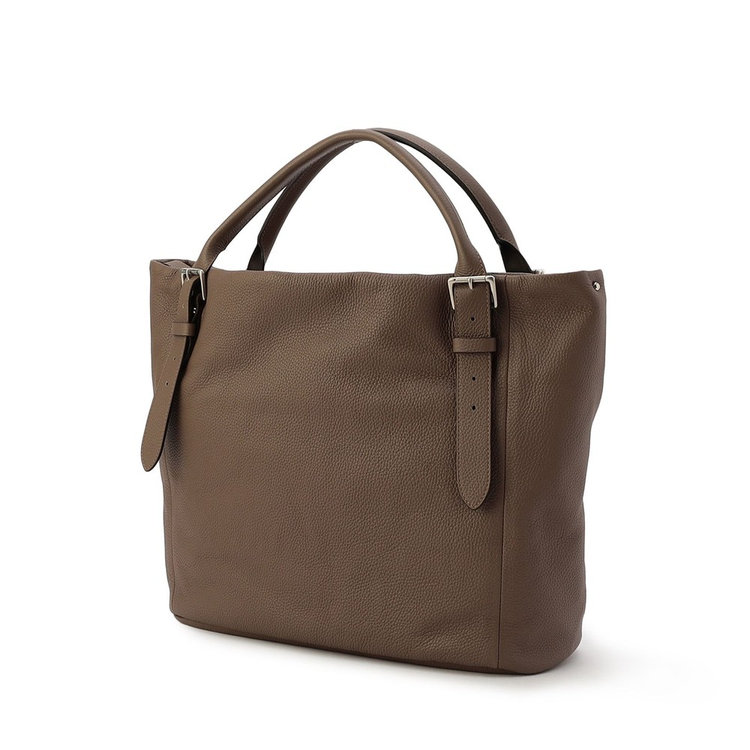 持ち手の長さはベルトで5段階調整可能。手持ち肩掛け、どちらでも持ちやすい仕様です。また、ざっくりと荷物を持ち運びやすい大ぶりなサイズ感も特長。間口にはバッグフォルムを調整できるストラップが付属しているため、荷物の容量やコーディネートに合わせてアレンジいただけます。落ち着きがあり品の良い素材使いのトートバッグは、ビジネスから日常まで、様々なシーンでお使いいただけます。