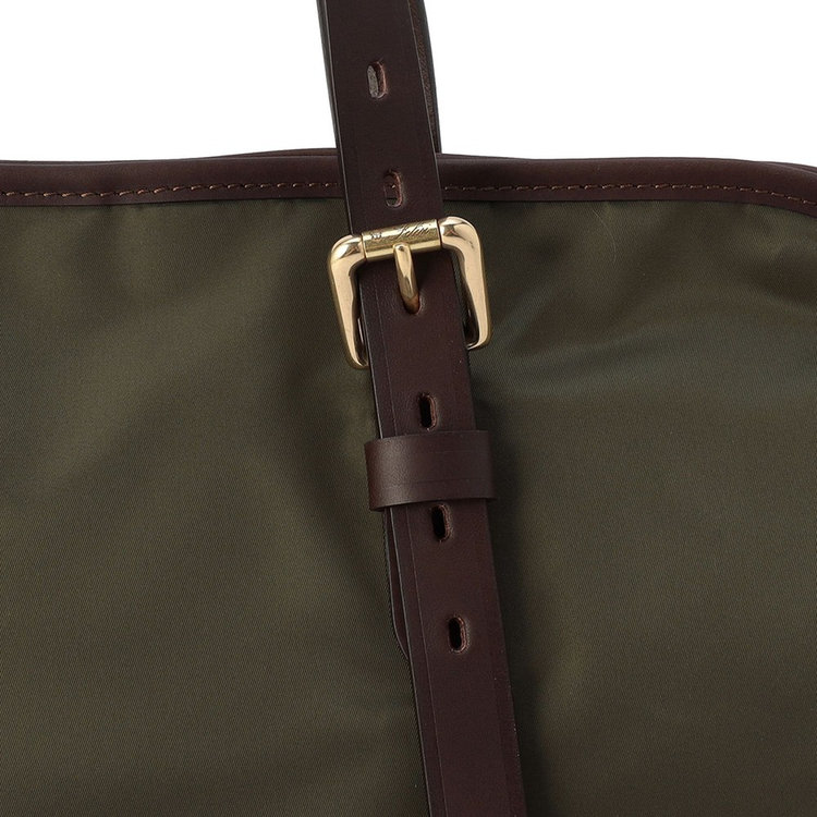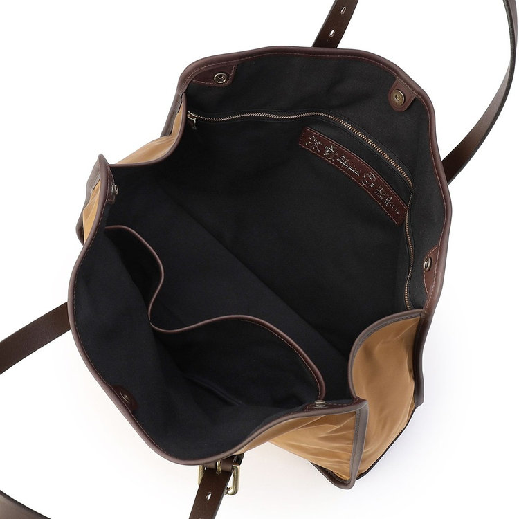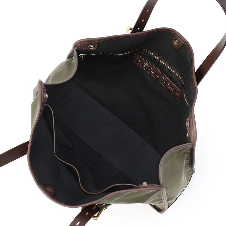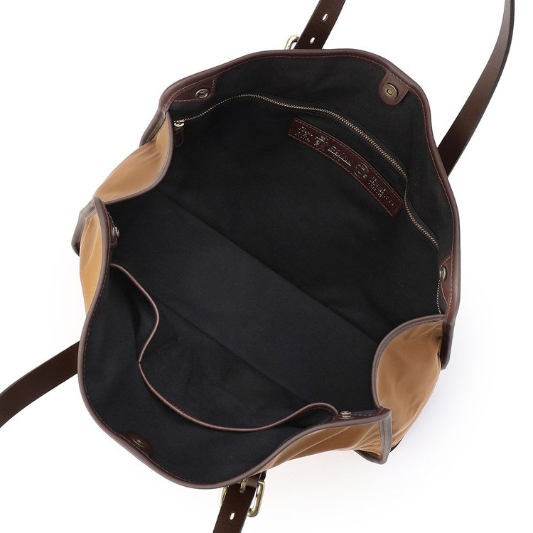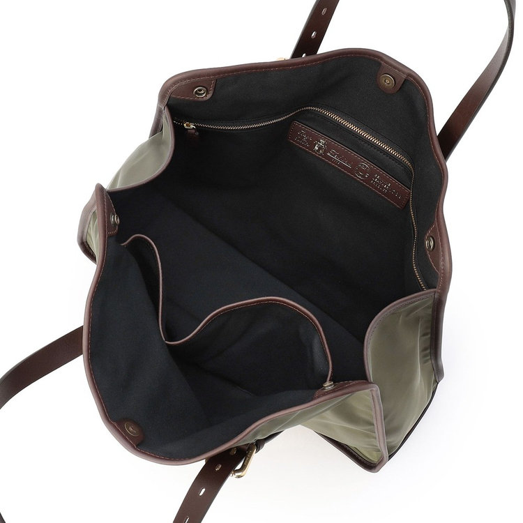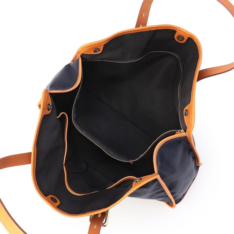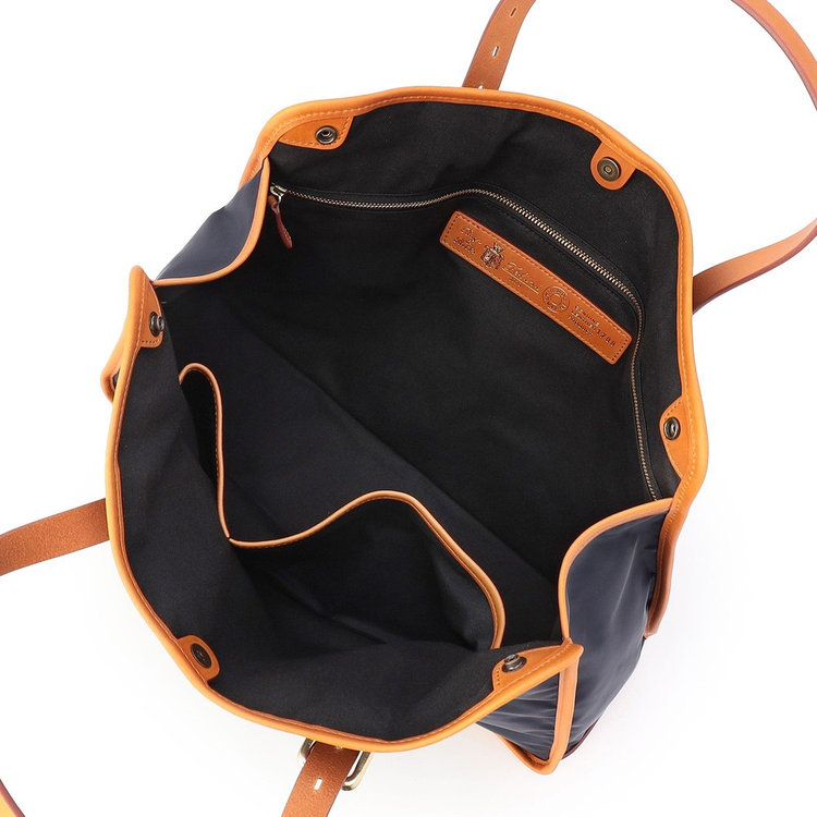 Felisiを代表する素材のひとつ、シルクのような光沢とイタリアンレザーにも通じる鮮やかな発色が魅力のナイロン生地。高密度に織られた生地は、しなやかで弾力性があり摩擦に強く、防皺(しわ)性にも優れています。その特性から使い込むほどに革のように馴染み、経年変化も愉しめる生地です。