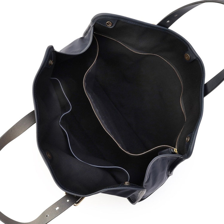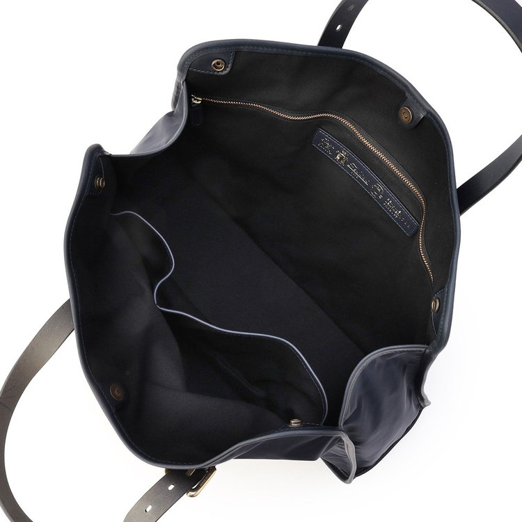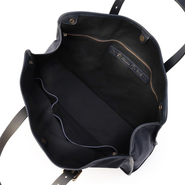レザーは重厚感があり、特に頑丈なブルハイドを採用。ベルトはタフな雰囲気ながら約2cm幅のスタイリッシュな印象。内側はシンプルな一室構造に、ポケットを複数備えた利便性の高い仕様。ポケットにあしらわれた柔らかな曲線を描くレザーパイピングに、見えないところまでこだわり抜くFelisiならではの職人技が伺えます。