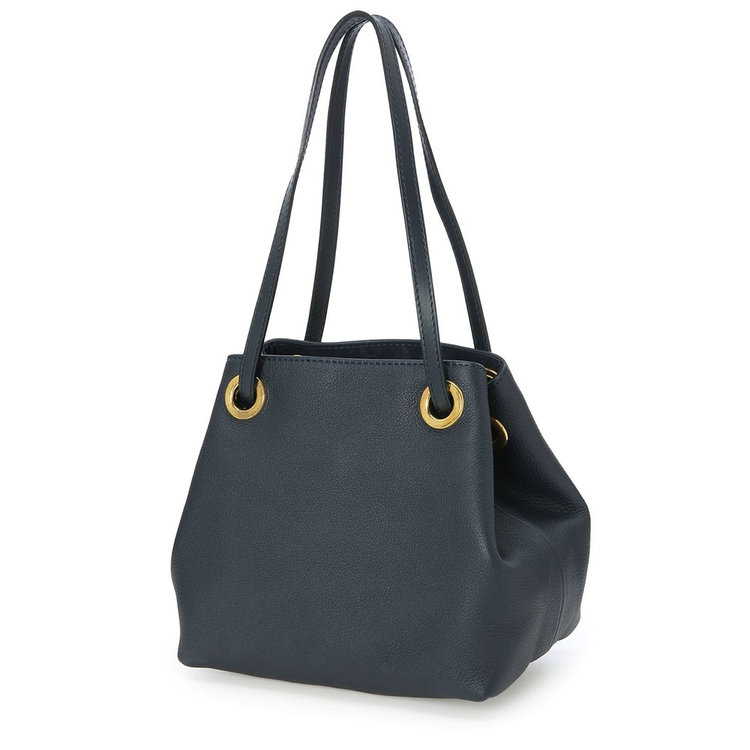 ゴールドのハトメが目を引く小ぶりなハンドバッグです。