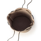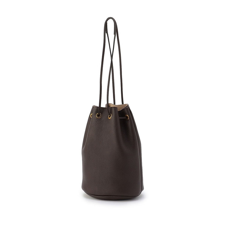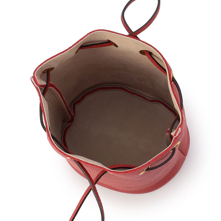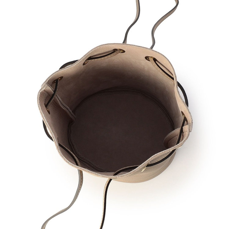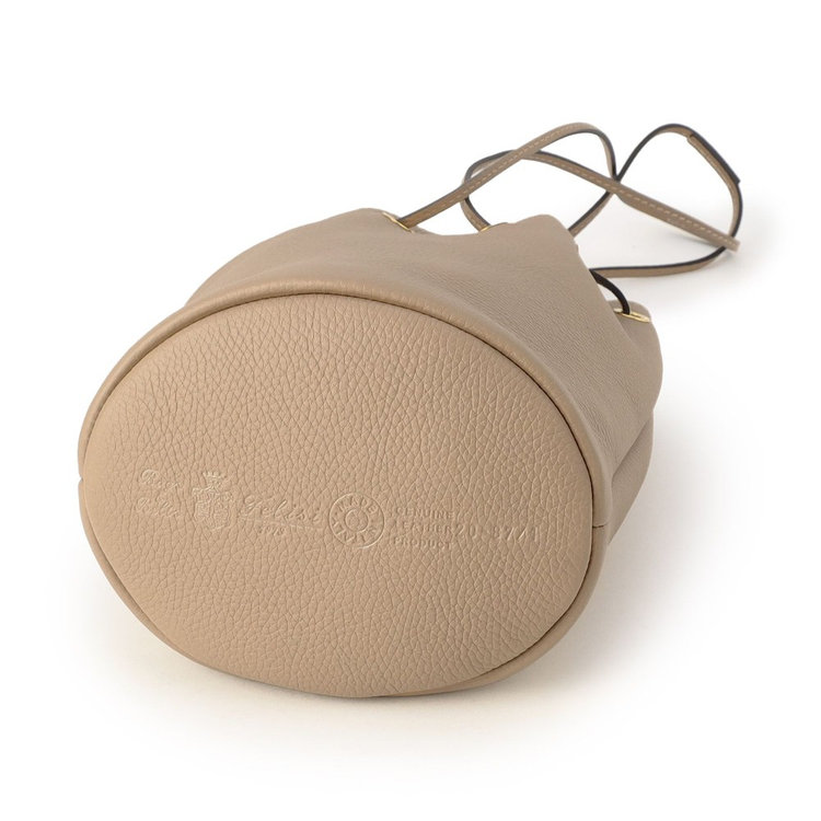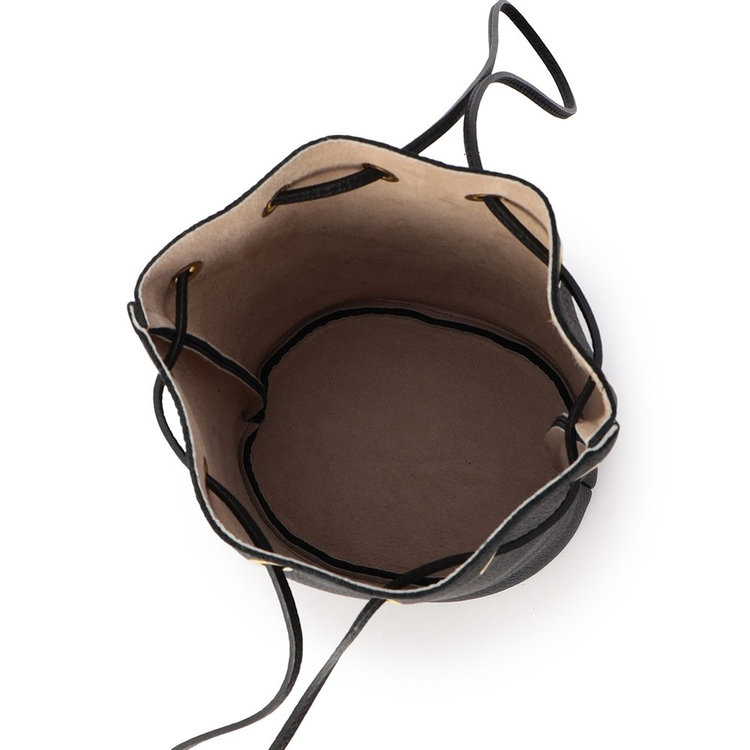 表地には柔らかな質感と細かなシボが美しいシュリンクレザーを使用。柔らかなシュリンクレザーだからこそドローコードを絞ることで自然なギャザーが生まれ、素材の良さを引き立てます。また、内装も本革で裏張りを施しました。見えない部分にまで上質な素材にこだわる、Felisiらしい素材選びを堪能できます。