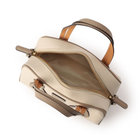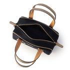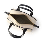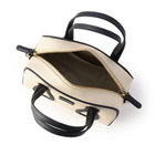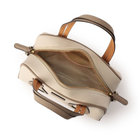 メイン素材にはキャンバス(AM)を、コンビネーションとなる持ち手などの部分にはシュリンクレザー(LD)を使用。また、内装にはイタリアンナイロン(DS)を使用しています。メイン素材は防水性を有する3層構造生地となるため、キャンバス本来のナチュラルでクリーンな風合いを楽しめながら、防水効果や適度なハリ感を備えます。