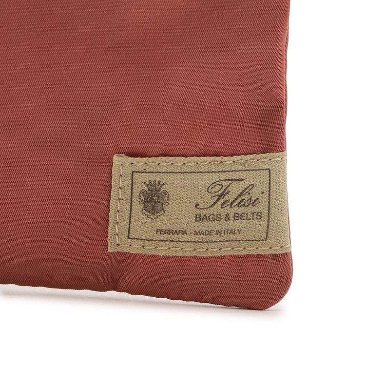 コンパクトさが特長のストラップ付きマルチケース。小物入れやハンドバッグとして活用しやすいサイズ感で、ちょっとした外出時に重宝します。サイドに付属したストラップの片方は先端がフック式となっており、バッグの持ち手やDカンに取り付けるなど、使い方も様々にアレンジ可能。素材は軽やかな使い心地と高級感を放つイタリア製ナイロンと、高品質で丁寧なつくりが愉しめるバケッタレザーのコンビネーション。小さいながらも、Felisi(フェリージ)のアイコニックな素材使いが愉しめます。