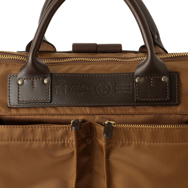 Felisiを代表するメインマテリアルのひとつであるナイロン生地。シルクのような光沢とイタリアンレザーにも通じる鮮やかな発色が魅力です。高密度に織られた生地はしなやかな弾力性があり摩擦に強く、防皺(シワ)性にも優れています。その特性から使い込むほどに革のように馴染んでいきます。