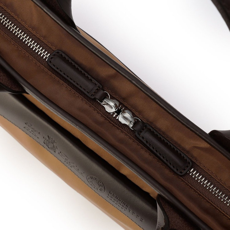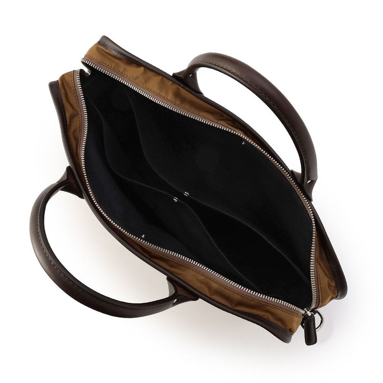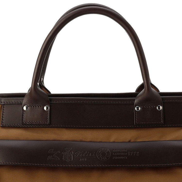 Felisi(フェリージ)バッグラインアップの中でも、代表的なアイテムとして愛され続けるブリーフケース。シルキーなナイロンが軽さと耐久性を兼ね備え、上品なバケッタレザーが温もりを感じさせてくれます。スーツスタイルにマッチする正統派の風格と快適な使い心地が共存した、Felisiを象徴するバッグです。
