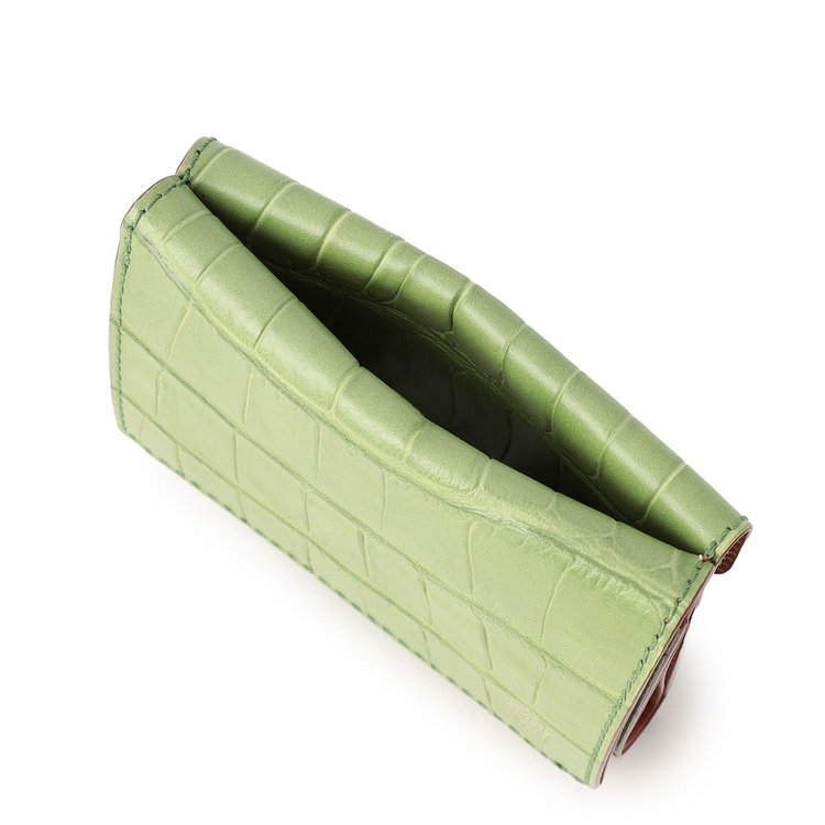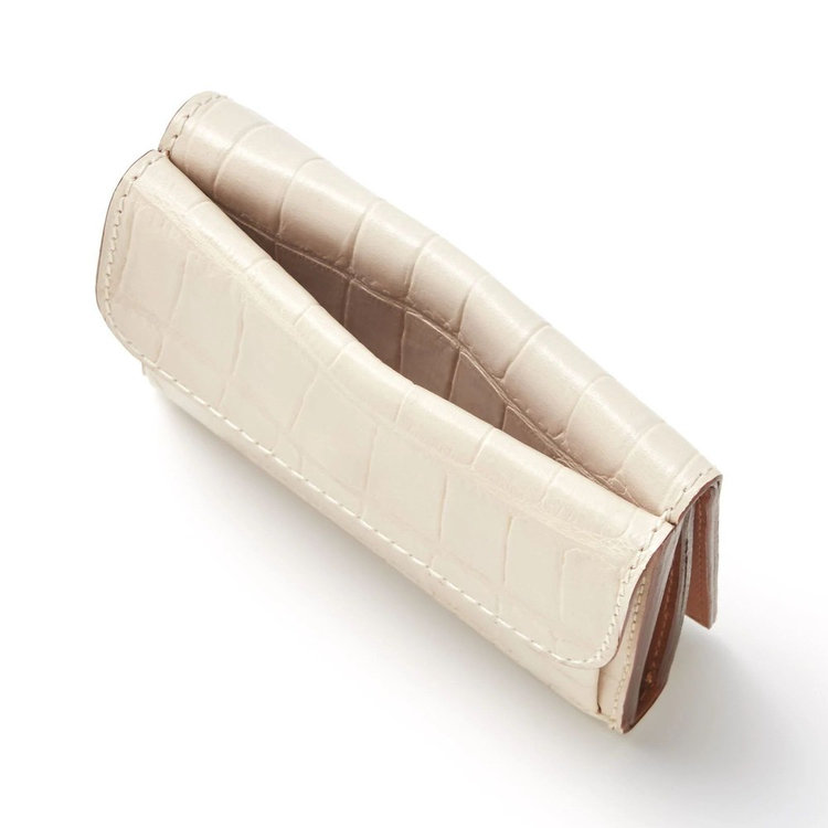 Felisiを代表する素材のひとつ、クロコダイルエンボスを施したカーフレザー。型からFelisiオリジナルで制作したエンボスを丁寧に施したレザーは、ベジタブルタンニン鞣しの後、さらに色付けとコーティングを施すなどの特殊工程を経て生産されています。そのため繊細で精巧な立体感、独自の発色の良さに加え、控えめな光沢感を放つのが特長。唯一無二の優美さを備えたFelisiエクスクルーシブレザーです。