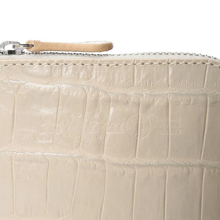 Felisiを代表するクロコダイルエンボスレザーを採用。クロコダイルらしい高級感のある立体的な質感を高く再現しつつ、美しい色出しと光沢感で上品さを併せ持った、Felisi(フェリージ)こだわりのエクスクルーシブレザーを採用しています。