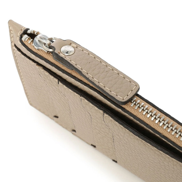 素材にはFelisiを代表するイタリア製シュリンクレザーを採用。優雅なシボ感と柔らかさが愉しめるレザーらしい表情で静かにラグジュアリーさを醸し出します。真鍮製ファスナーやレザーライニング、丁寧なステッチワークとコバ処理など、細部までこだわるFelisiのクラフトマンシップを堪能できます。
