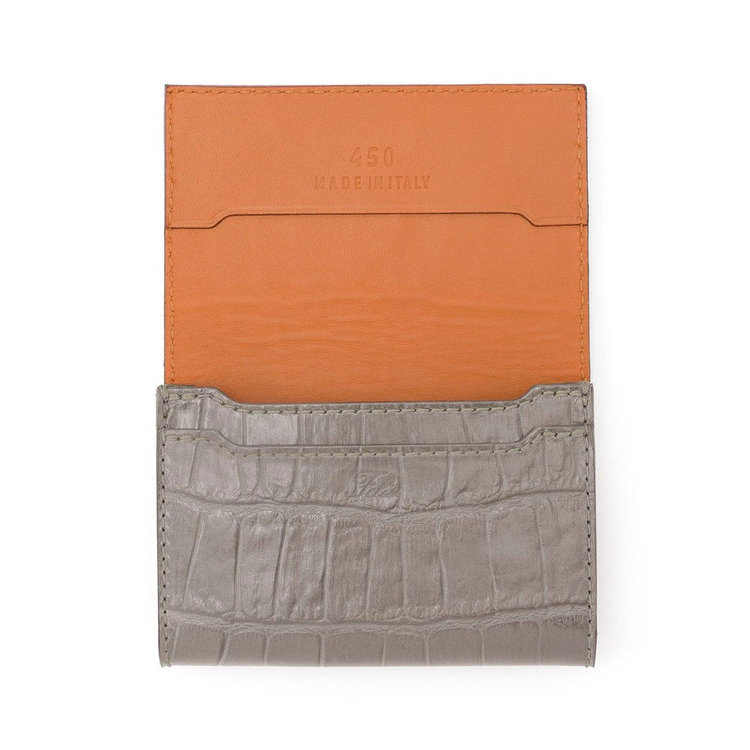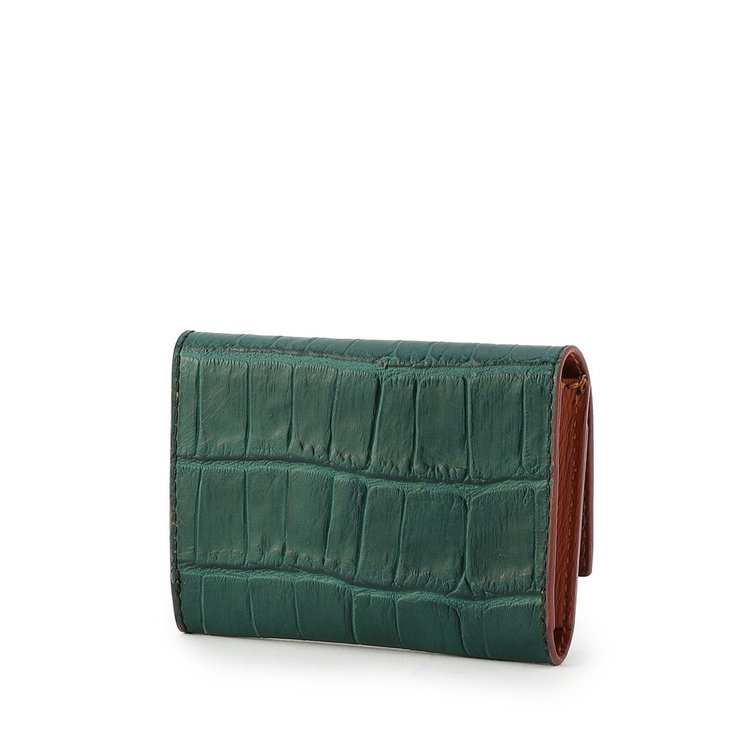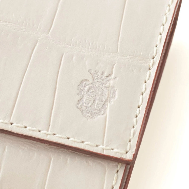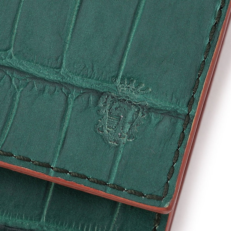 Felisiを代表する素材のひとつ、クロコダイルエンボスを施したカーフレザー。型からFelisiオリジナルで制作したエンボスを丁寧に施したレザーは、ベジタブルタンニン鞣しの後、さらに色付けとコーティングを施すなどの特殊工程を経て生産されています。そのため繊細で精巧な立体感、独自の発色の良さに加え、控えめな光沢感を放つのが特長。唯一無二の優美さを備えたFelisiエクスクルーシブレザーです。
