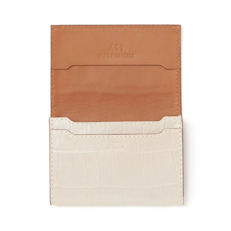また、程よいマチ幅のあるつくりのため、通常の厚みの名刺であれば約50枚ほど収納可能。さらに内側も総革つくりとなっておりFelisiらしい追求した素材使いを愉しめます。表革とのカラーコントラストも印象的です。ビジネスシーンに相応しいミニマルな機能性と上質な素材による品格が備わった名刺入れは、新社会人の方や大切な人への贈りものとしてもおすすめです。