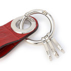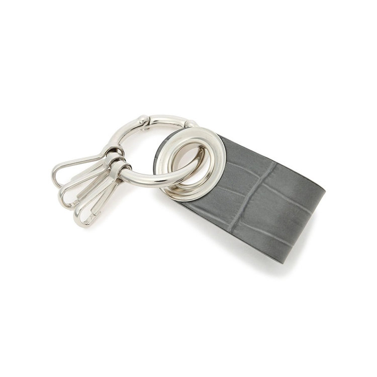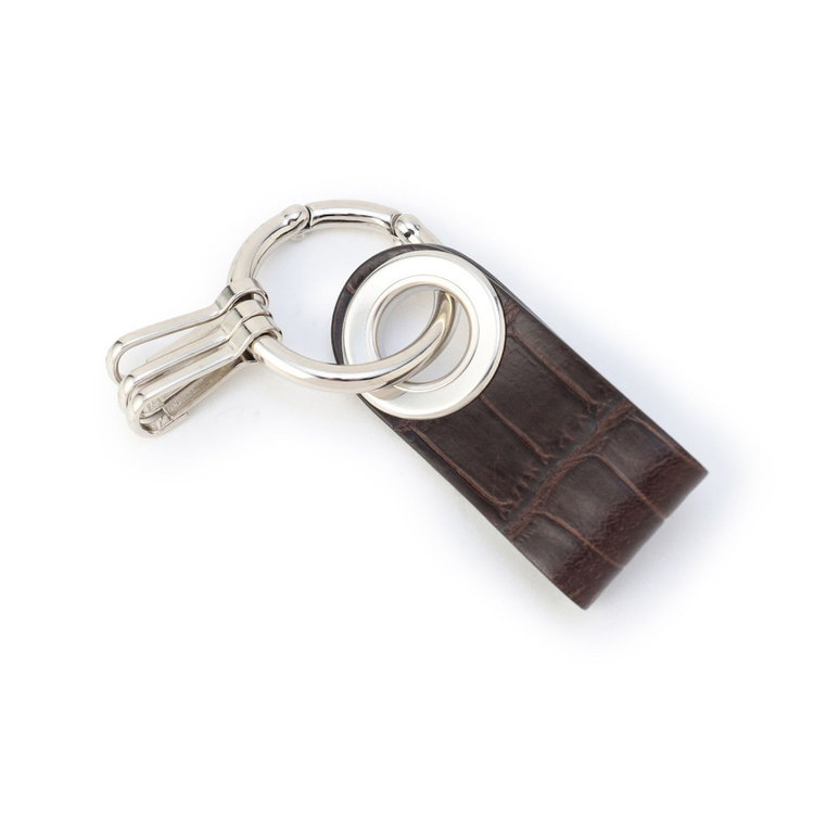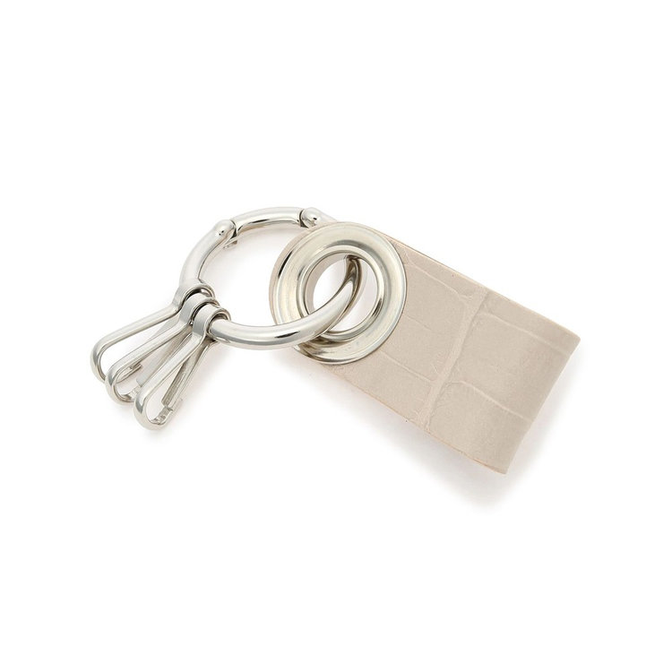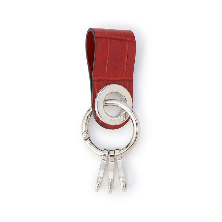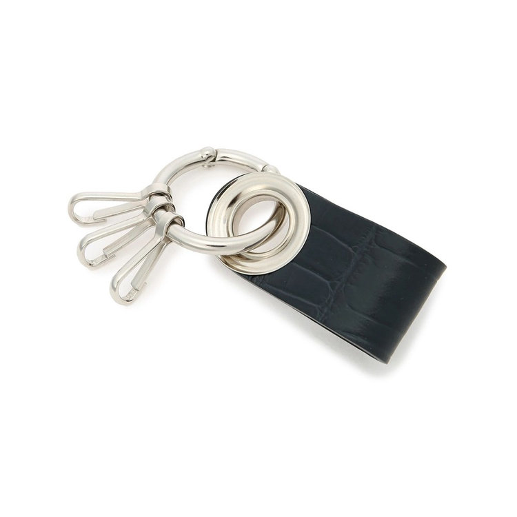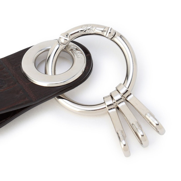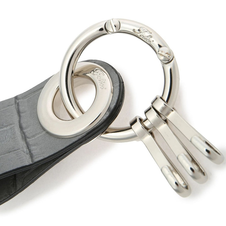 シンプルな使い心地の3連フック付きキーホルダー。小さなサイズのアイテムながらも、高級感のあるクロコダイルエンボスレザーと、さり気なくFelisiの刻印を施したオリジナルパーツを組み合わせた贅沢な仕様が特長です。
