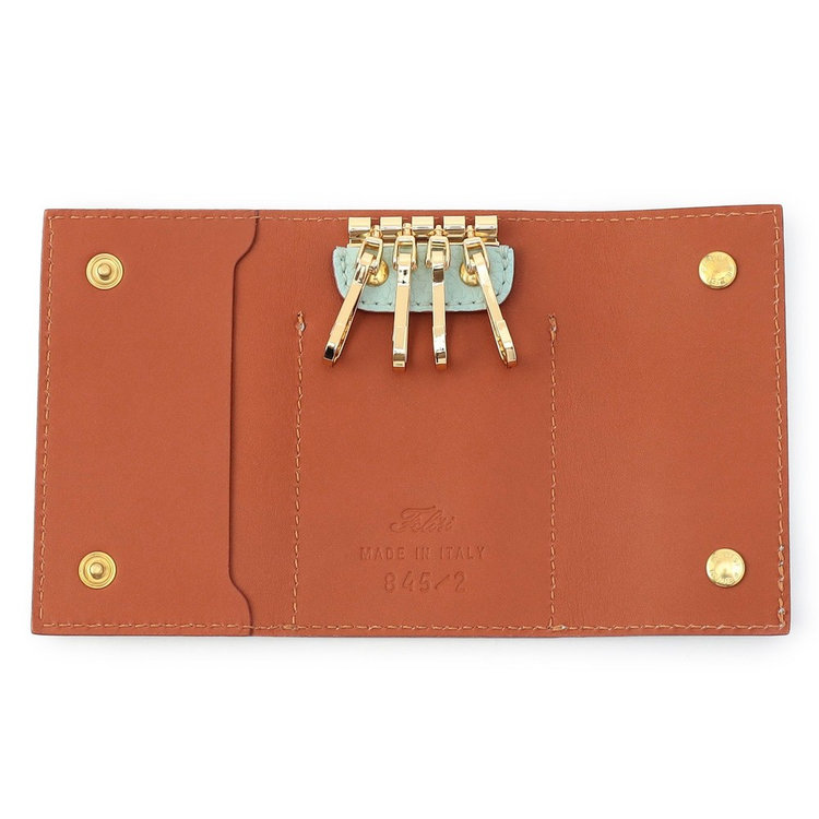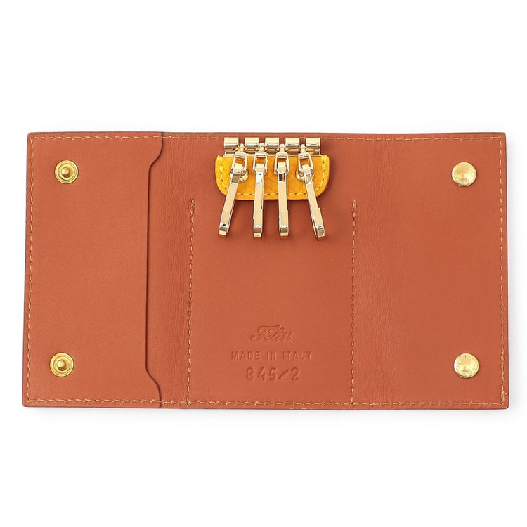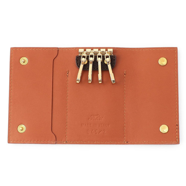 素材にはFelisi(フェリージ)の象徴であるイタリア製シュリンクレザーを使用。毎日手にする使用頻度の高いアイテムだからこそ味わい深いエイジングが一層愉しめます。さり気ない高級感を演出するだけでなく、長く愛用できる耐久性を兼備したキーケースは、大切な方への贈りものとしてもおすすめです。