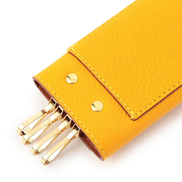 軽やかな使い心地とレザーの上質な手触りを愉しめる4連フックキーケース「845/2/LD」。手のひらに馴染みやすいコンパクトなサイズ感で、スペースを取らず快適にお使いいただけます。内側にはキーフックが4つ、外装背面にはカードポケットを1つ備えています。内側のスリットは駐車券など簡易的な小物を入れるポケットとして活用するのにも便利です。