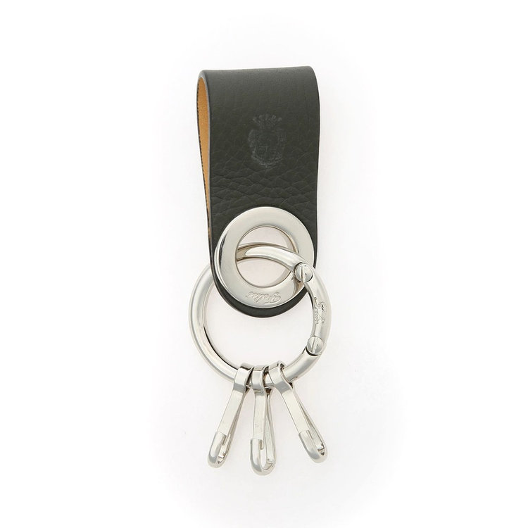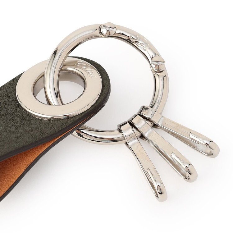 シンプルな使い心地の3連フック付きキーホルダー。小さなサイズのアイテムながらも、重厚感のあるイタリア製シュリンクレザーと、さり気なくFelisiの刻印を施したオリジナルパーツを組み合わせた贅沢な仕様が特長です。